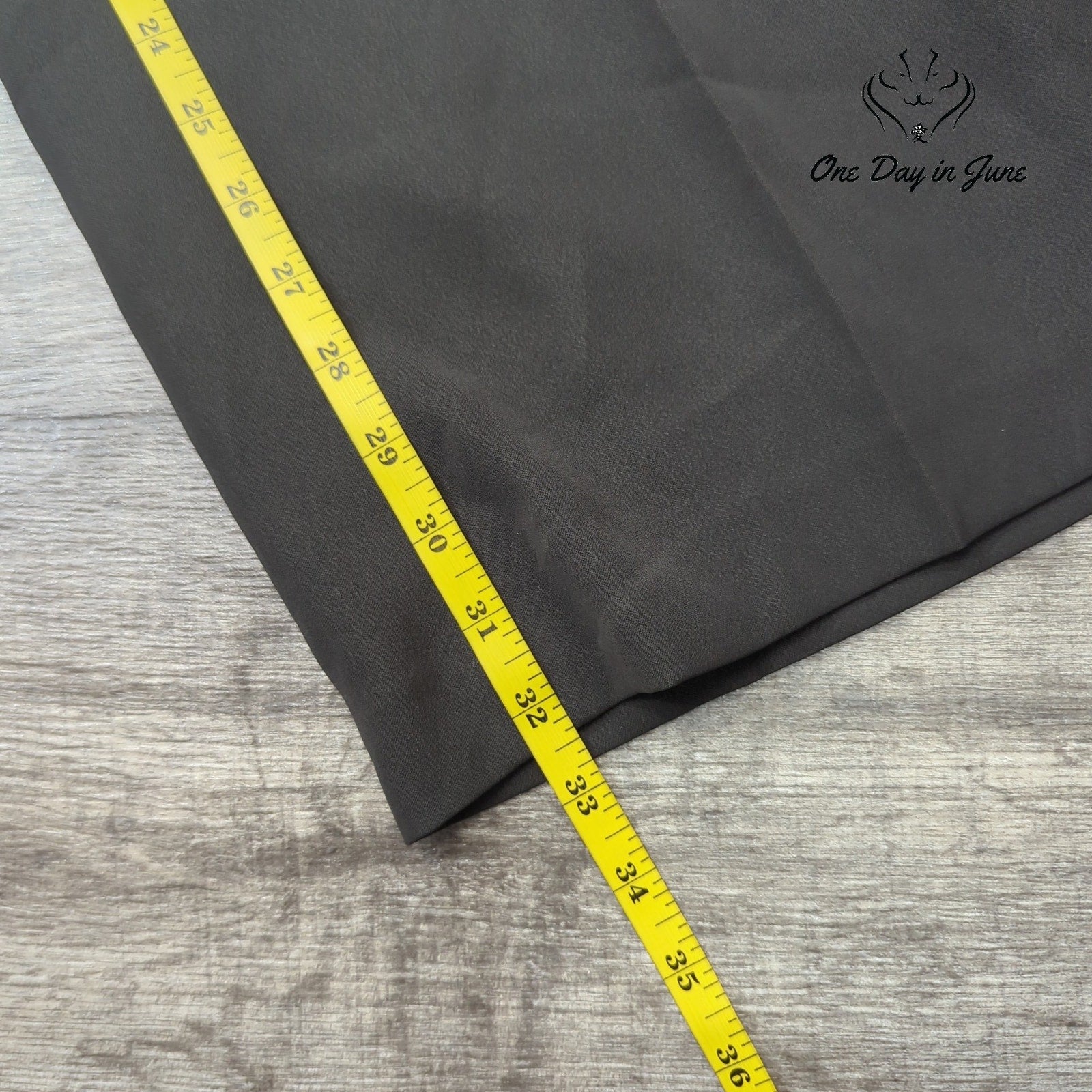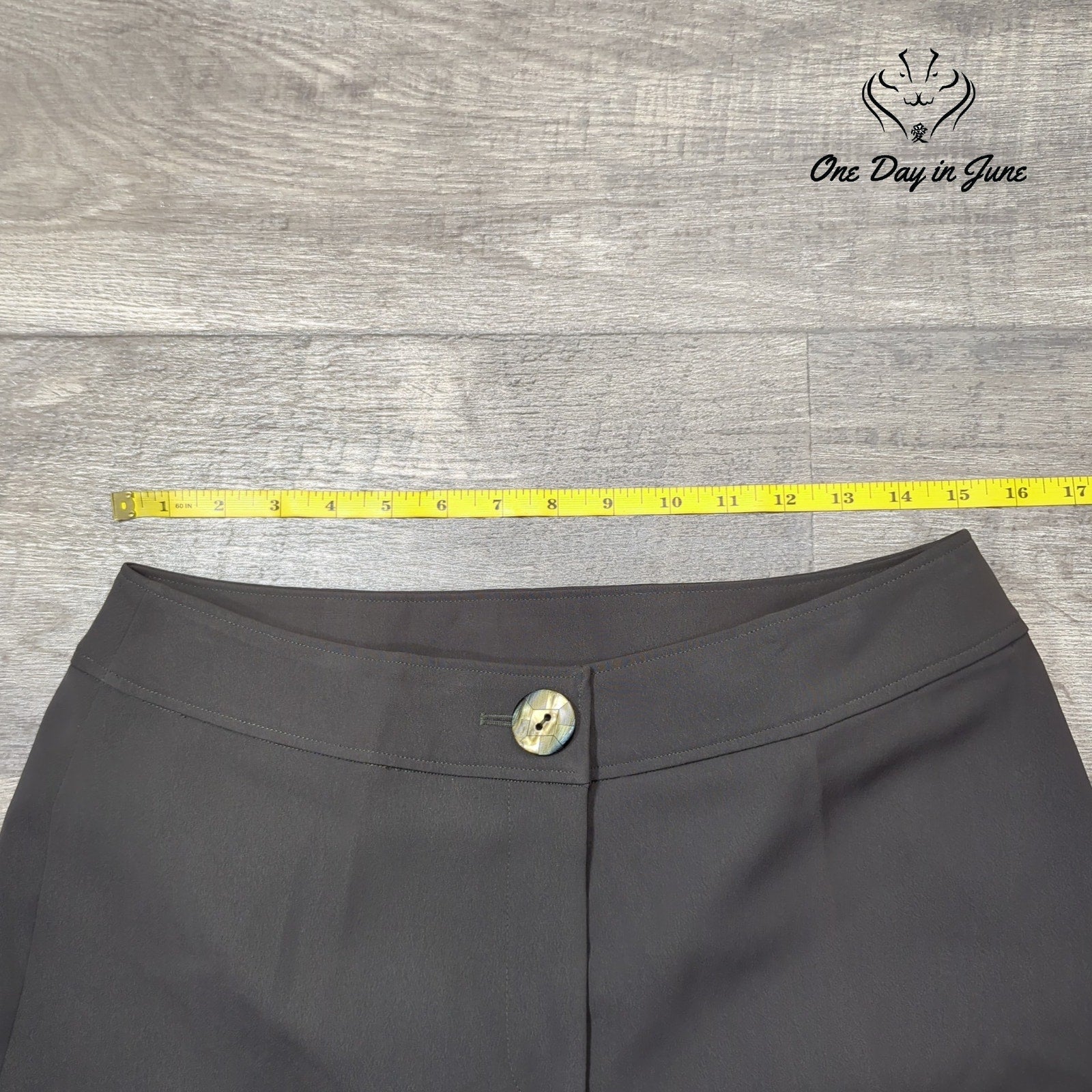 Elegantly tailored, these grey dress pants embody the sophistication of a bygone era. With their straight leg silhouette and pristine condition, they promise to elevate any ensemble with a touch of timeless grace. Crafted from polyester, they offer both comfort and style for the modern woman who appreciates classic design.