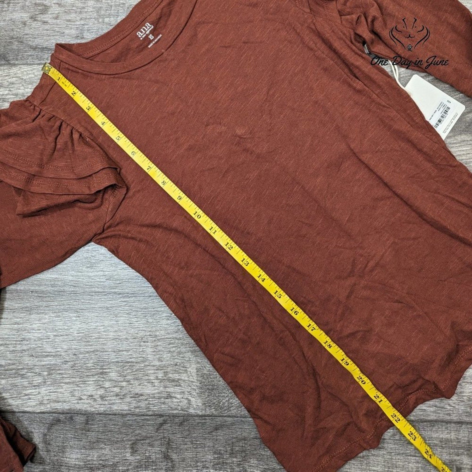 A.n.a Long Sleeve Ruffle Shoulder Tee Shirt Size XS