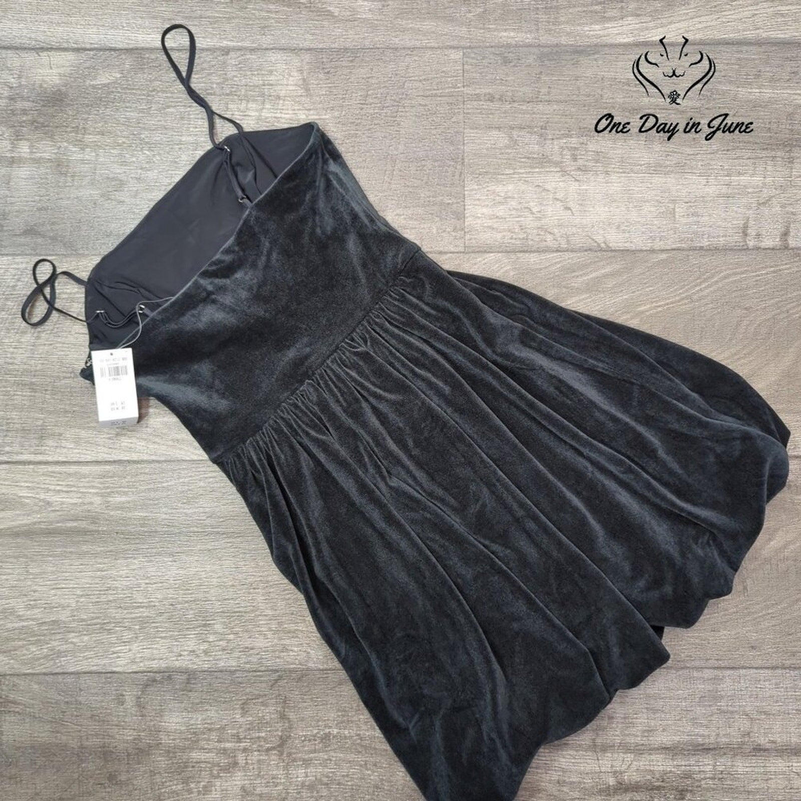 Step into timeless elegance with this black velour mini dress by Abercrombie & Fitch. New with tags, its spaghetti straps and luxurious fabric promise both comfort and allure. Perfect for those nights when you need to shine.