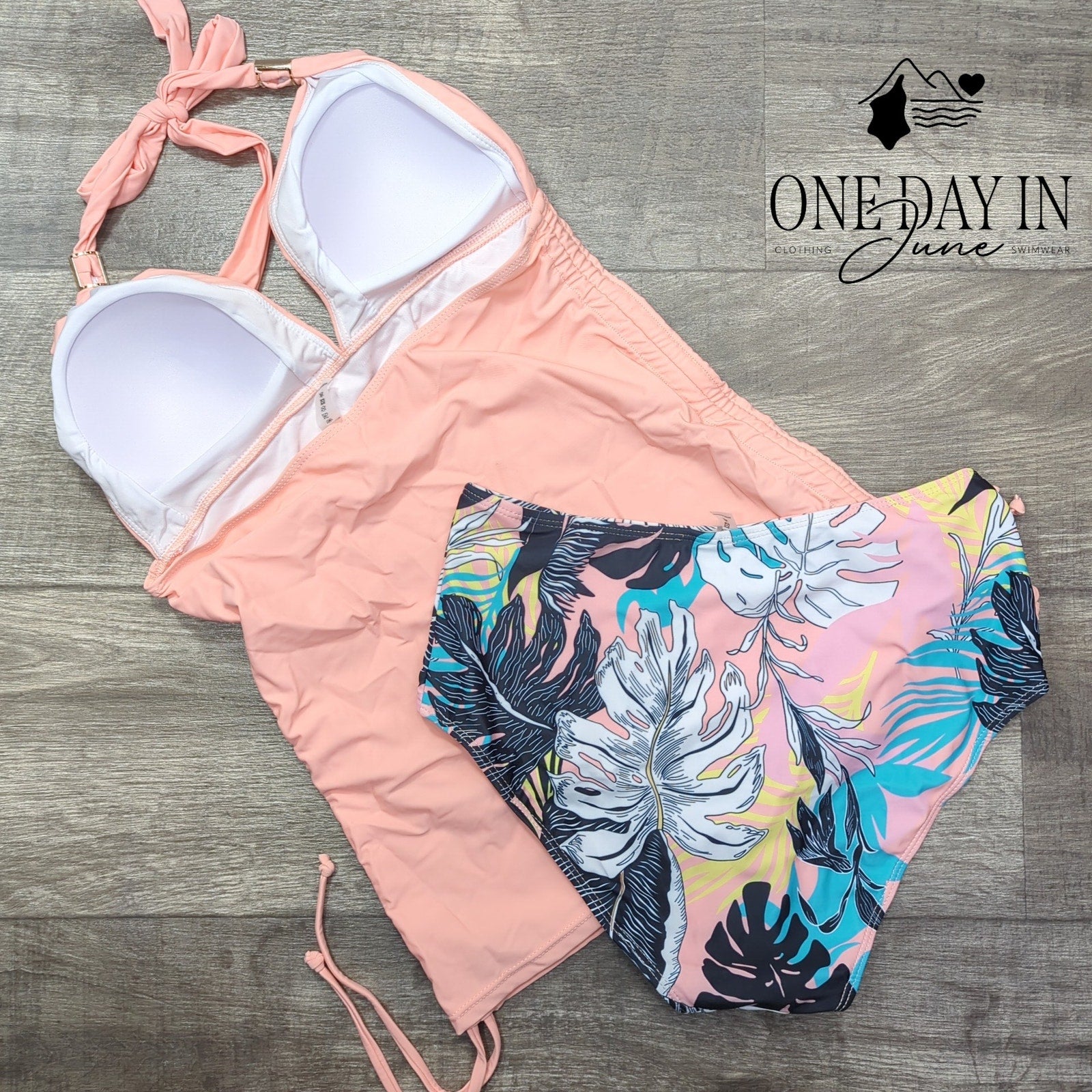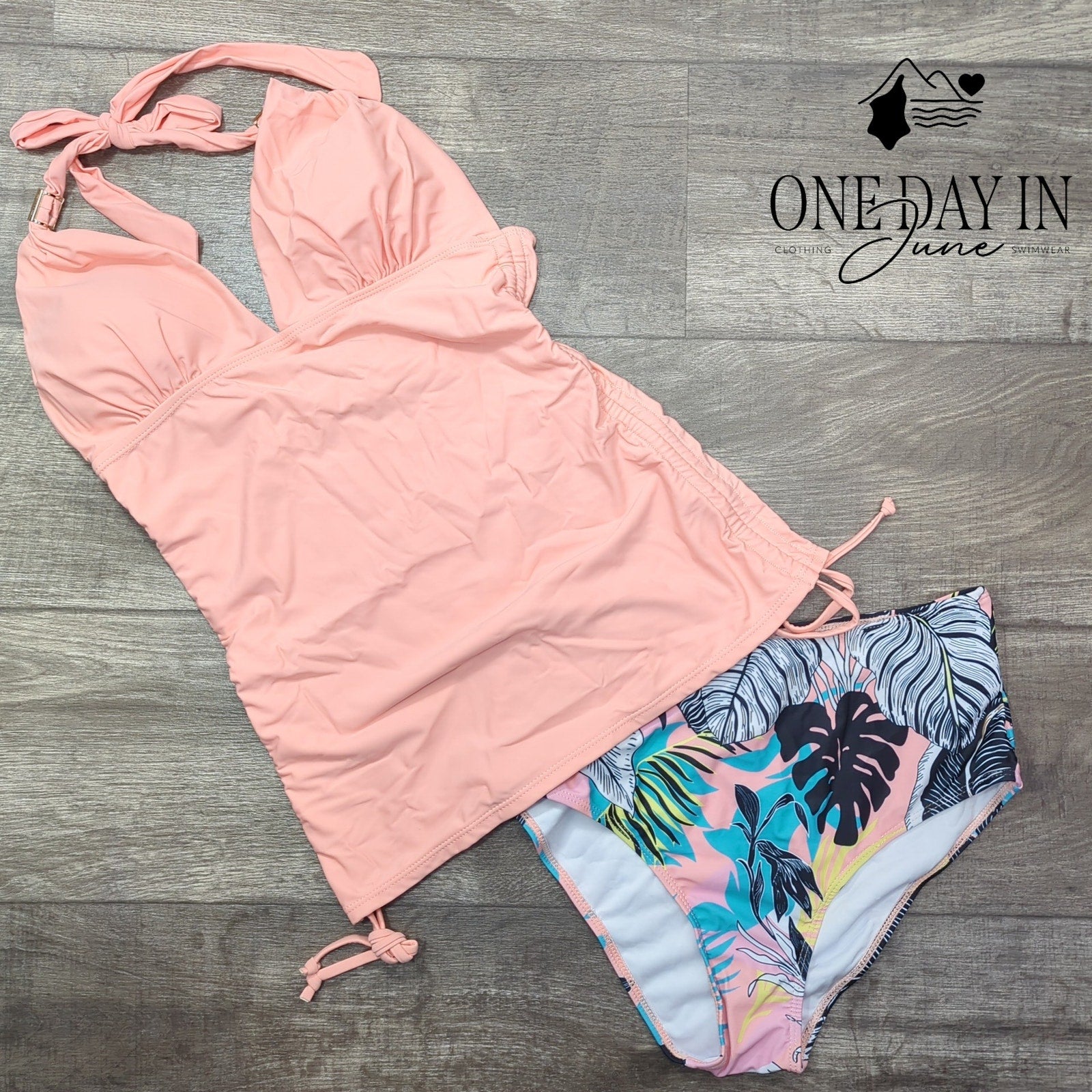 This bright orange tankini brings summer cheer with halter ties so neat and clear! The tummy control feature keeps you looking sweet, while drawstring details make this swimsuit treat complete.