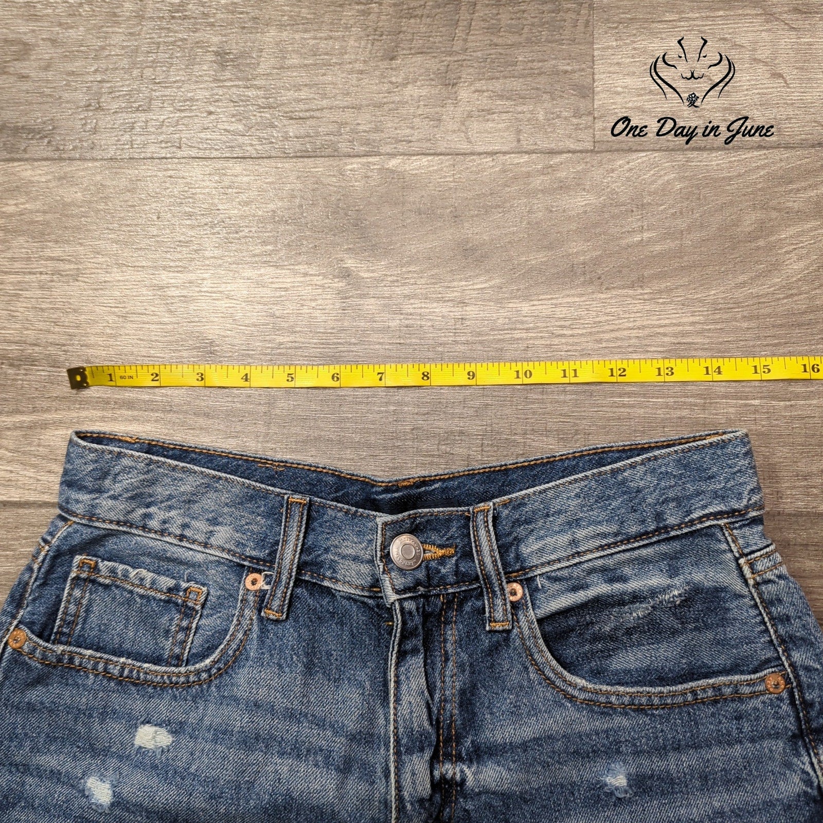 Classic blue denim shorts from Aeropostale exude casual American charm, perfect for those languid summer afternoons. Meticulously maintained and crafted from soft cotton, these shorts possess that coveted lived-in comfort while maintaining their pristine allure.