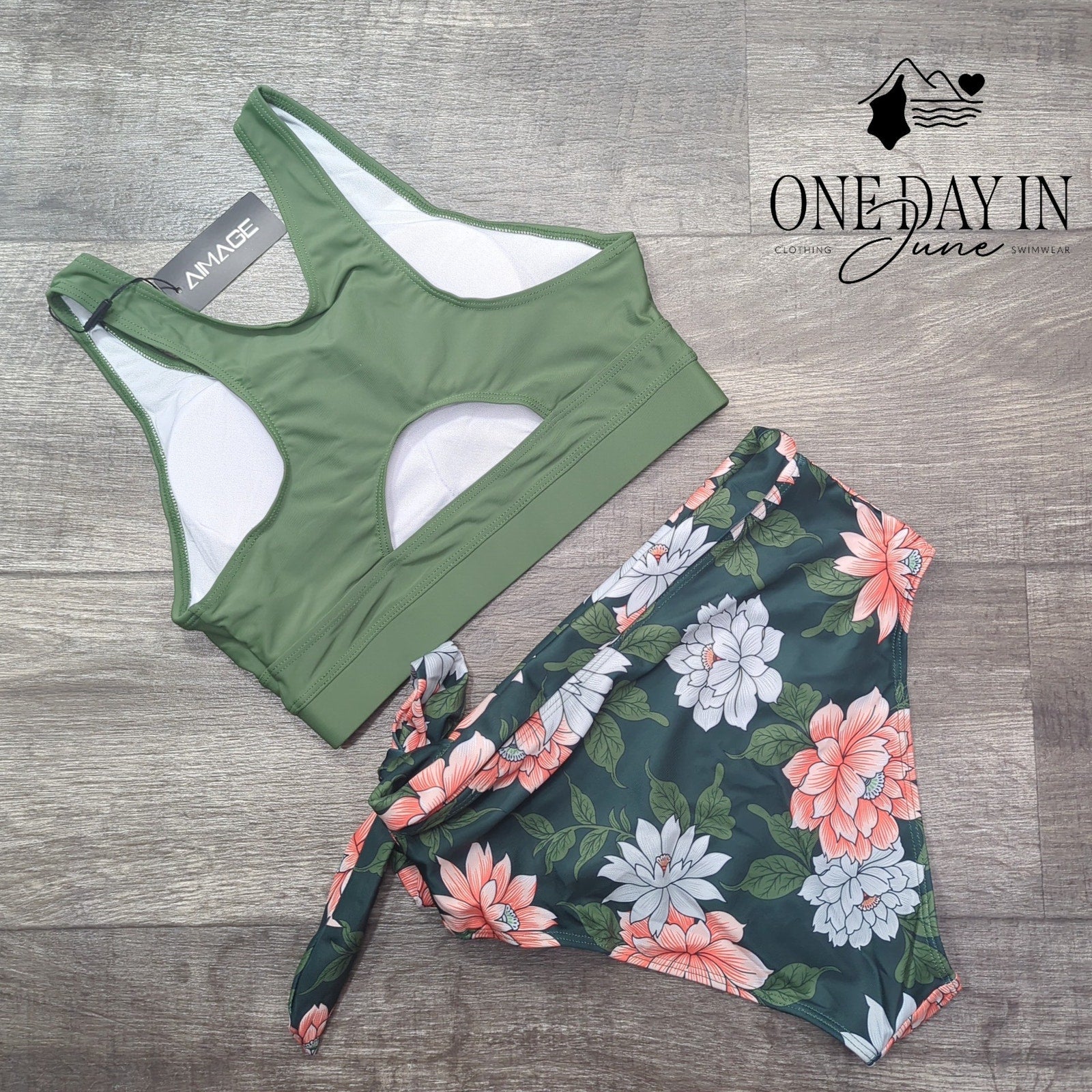 Tags: #AimageSwimwear #GreenBikini #CropTopSwimsuit