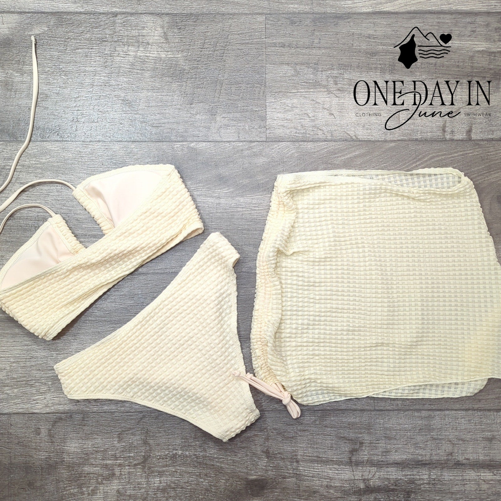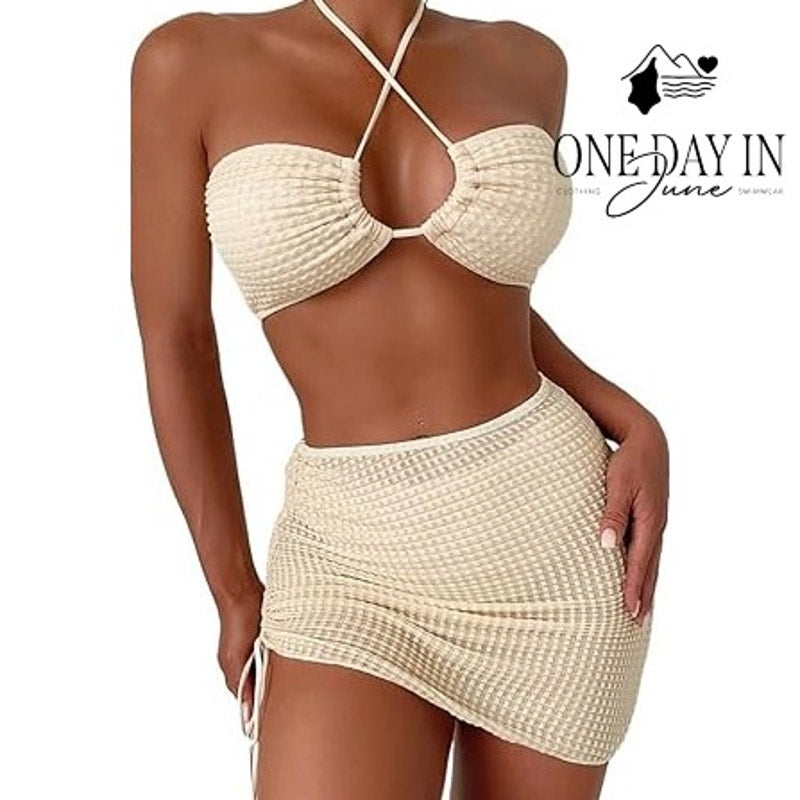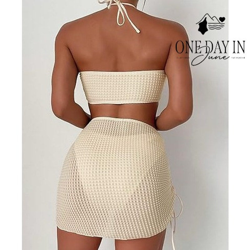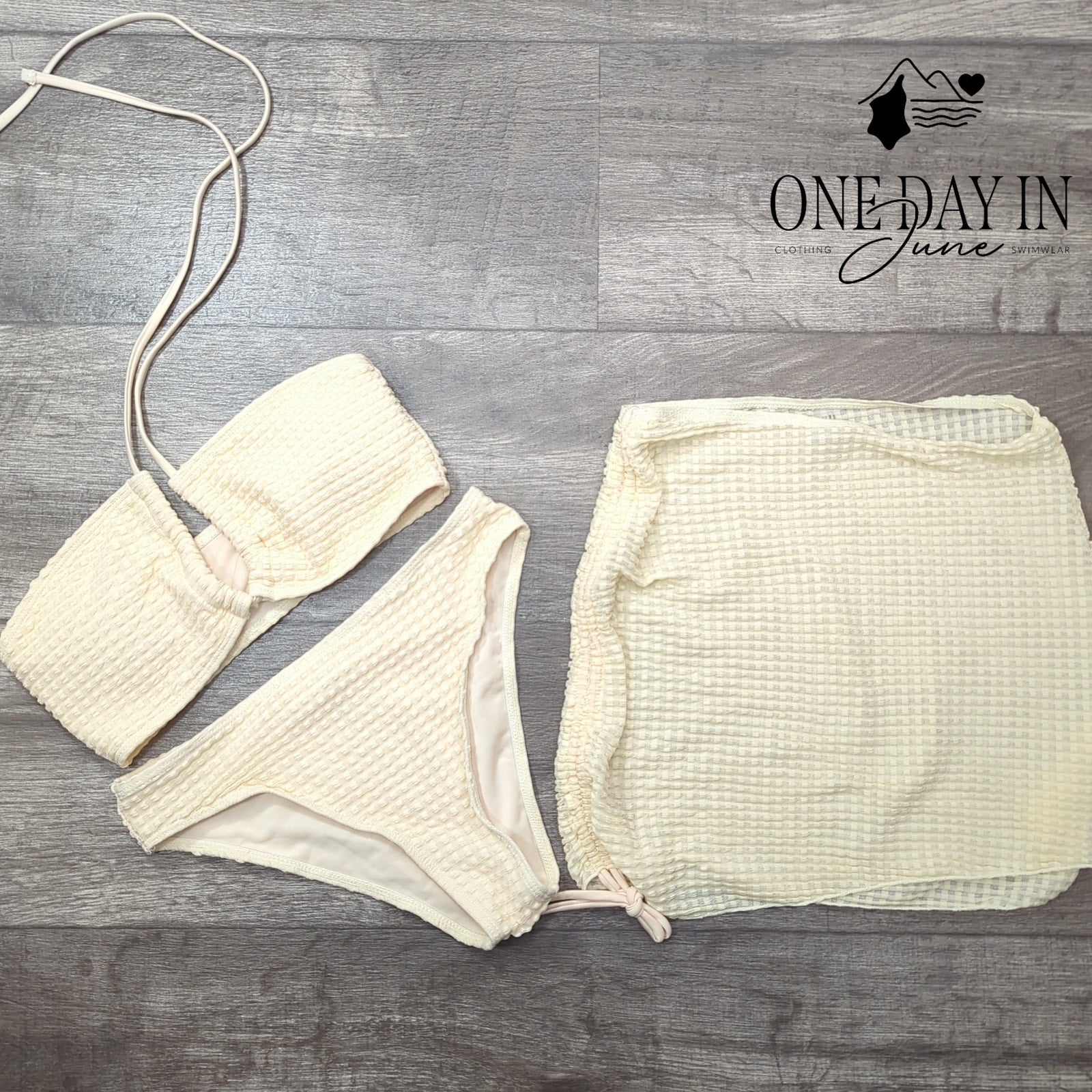 Aleumdr Textured Halter Bandeau 3 Piece Bikini Swimsuit Size XS