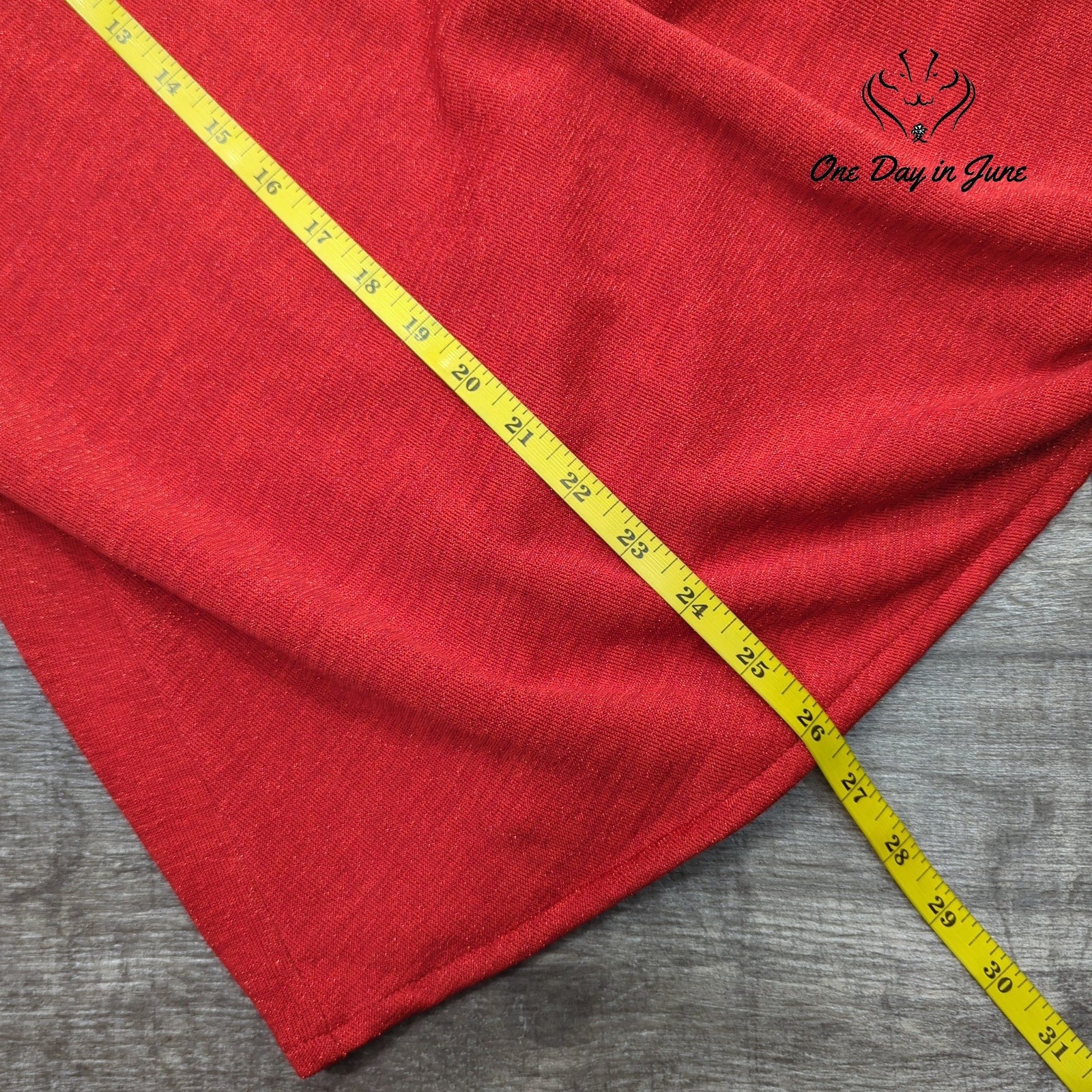 Behold, a resplendent crimson blouse from the esteemed house of Alfani, crafted with the utmost care and attention to detail. This long-sleeved garment, adorned with a subtle metallic sheen, promises to bestow upon its wearer an air of elegance and refinement befitting the most distinguished of ladies. Its luxurious blend of polyester, metallic fibers, and spandex ensures both comfort and a flattering silhouette, making it a most coveted addition to any discerning woman's wardrobe.