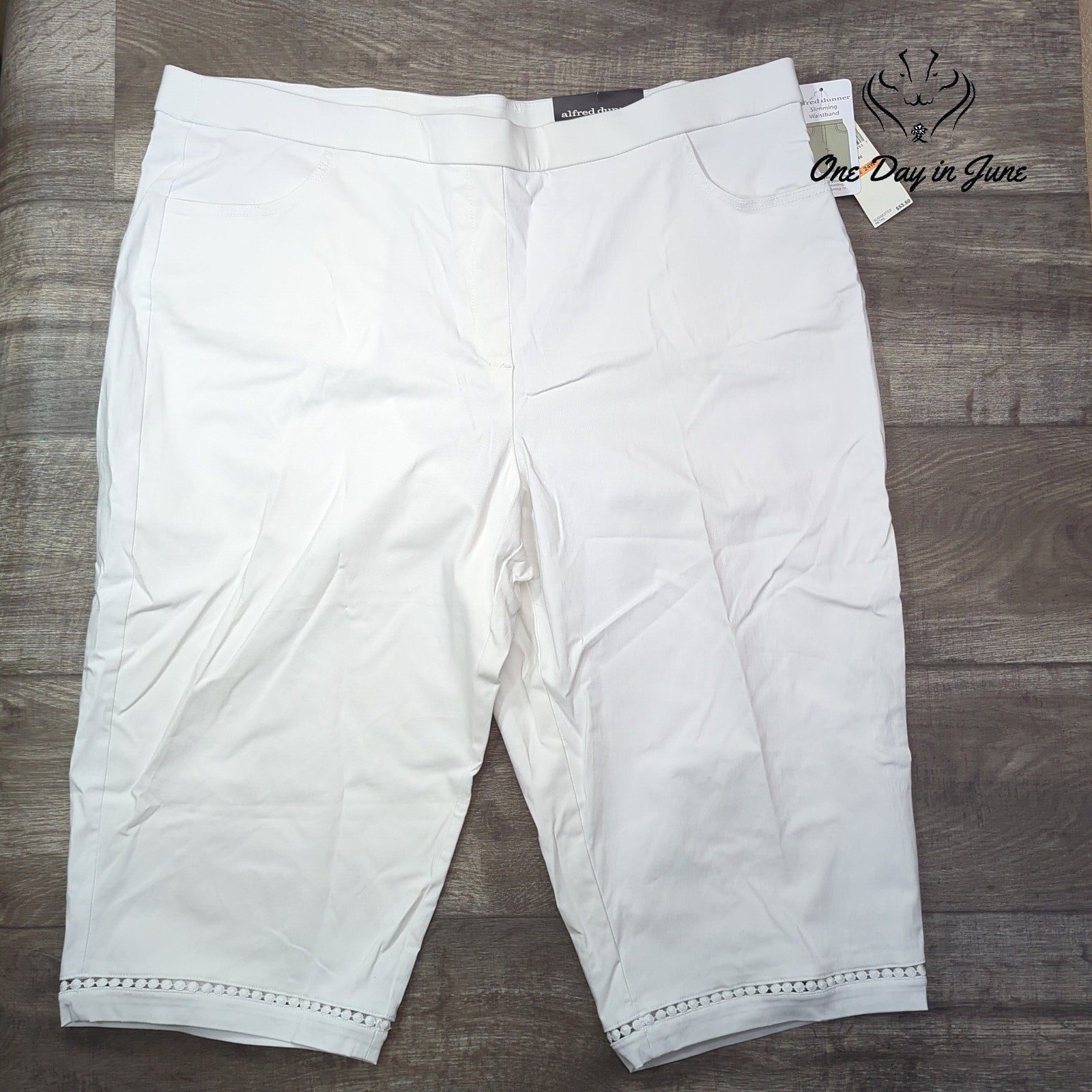 Tags: #AlfredDunnerPlusSizePants #WhiteCapris #PlusSize24W