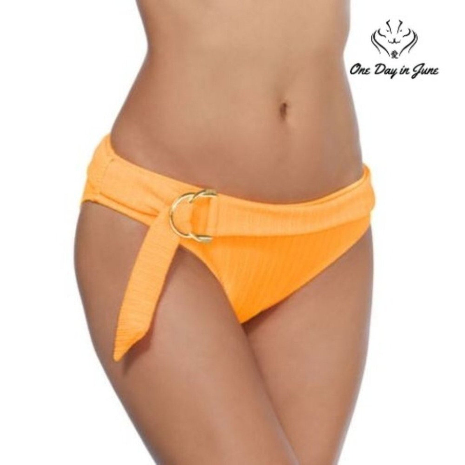 Indulge in the delights of summer with this charming Ambrielle ribbed hipster bikini bottom. The vibrant orange hue is sure to turn heads at the seaside, while the ribbed texture adds a touch of elegance befitting a lady of discerning taste. Crafted from a blend of polyester and spandex, this bikini bottom offers both comfort and style for your aquatic adventures.