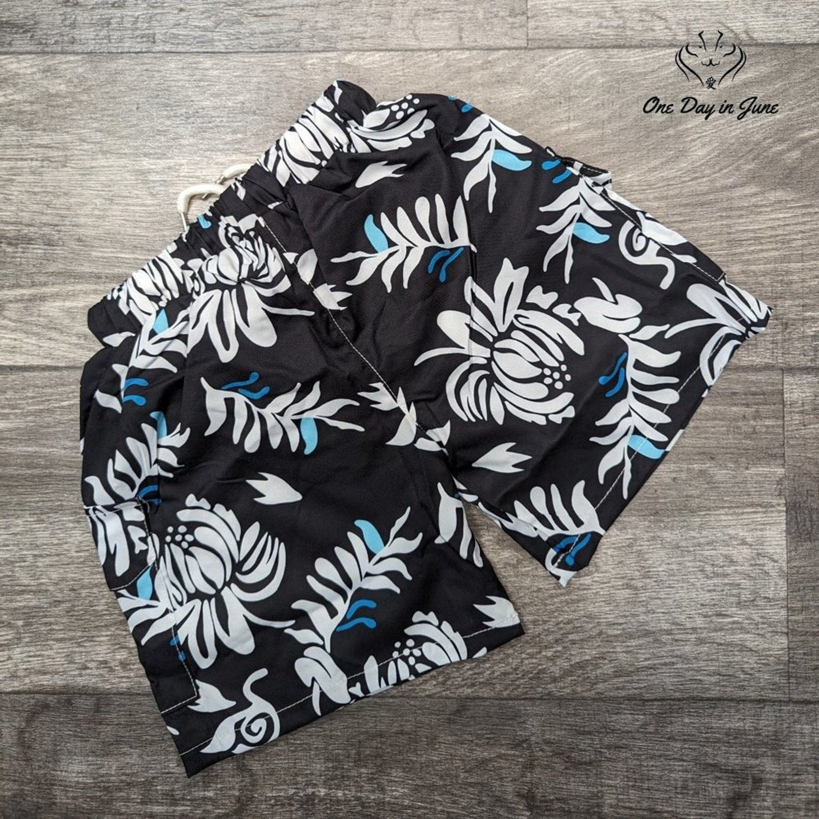 With comfy drawstrings to keep them just right, these black board shorts are a pure delight! Perfect for playing or splashing with glee, these cotton-poly shorts are as cool as can be.