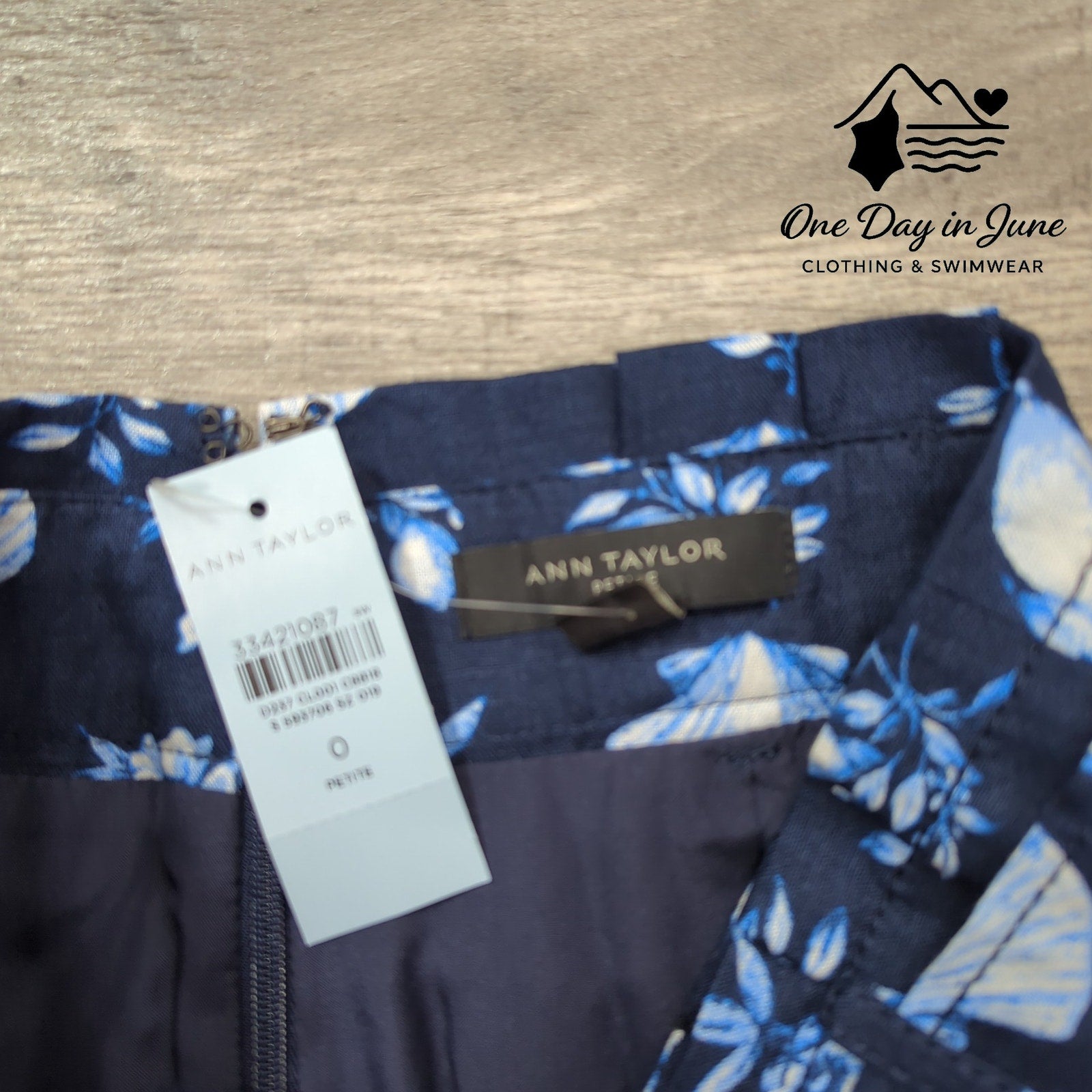 Ann Taylor Linen Belted Floral Lined Midi Skirt Size 0