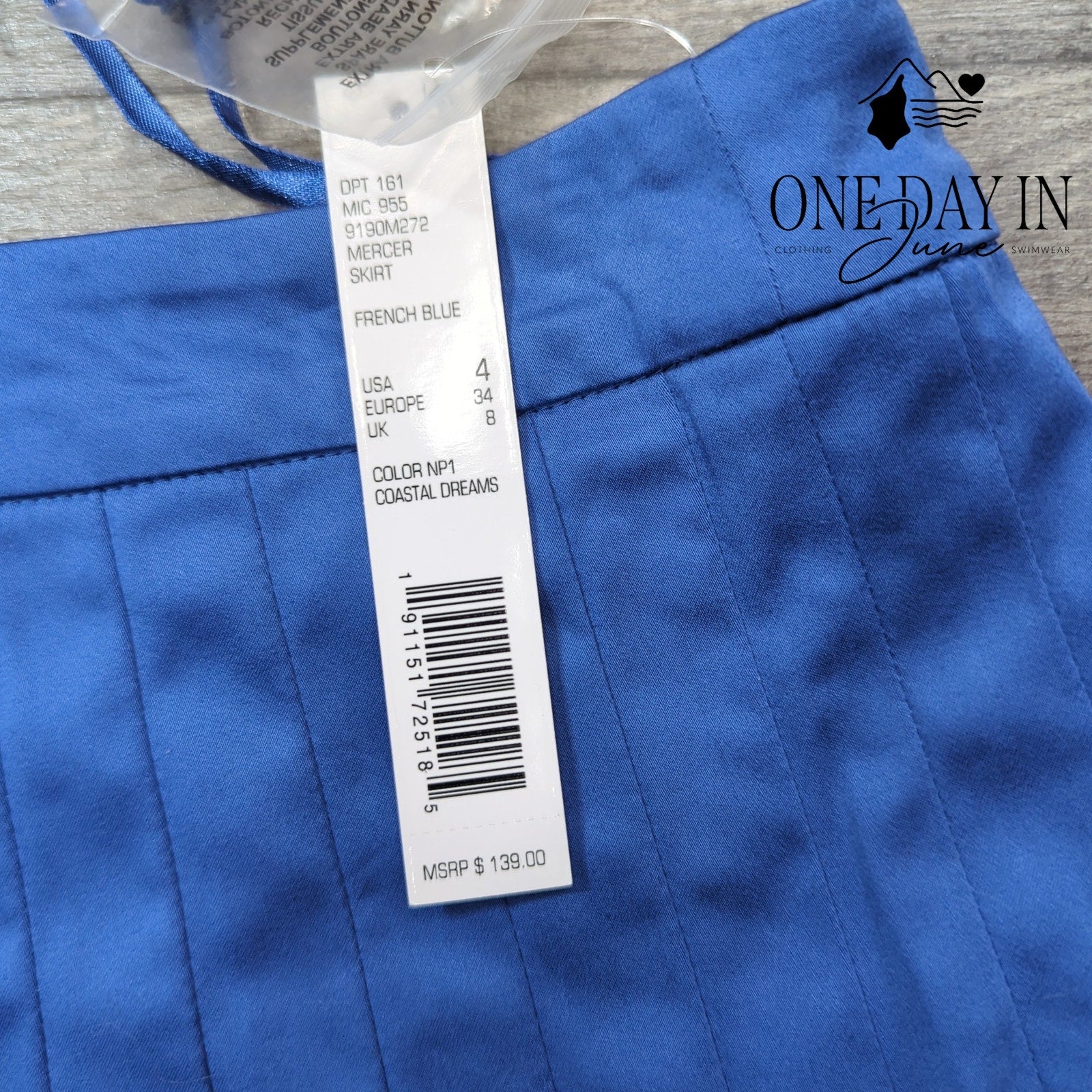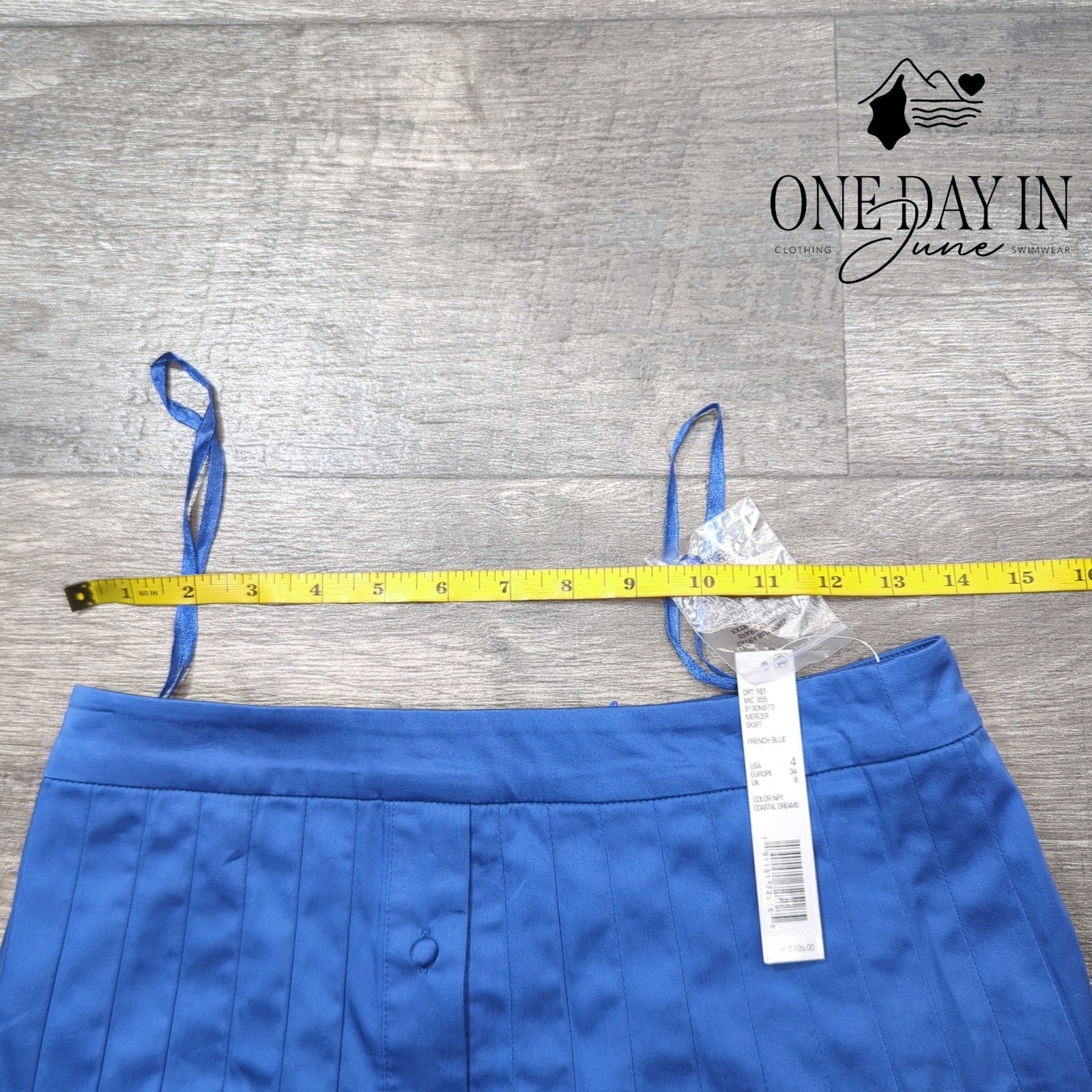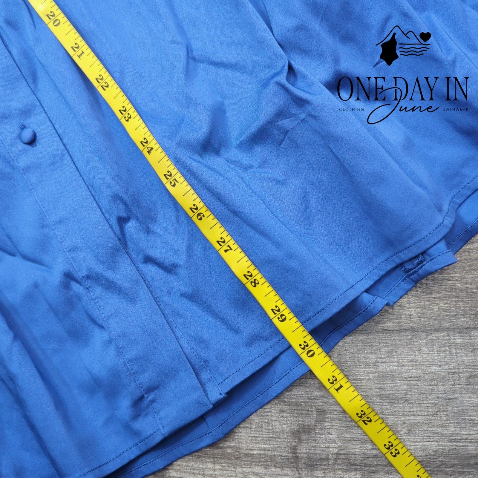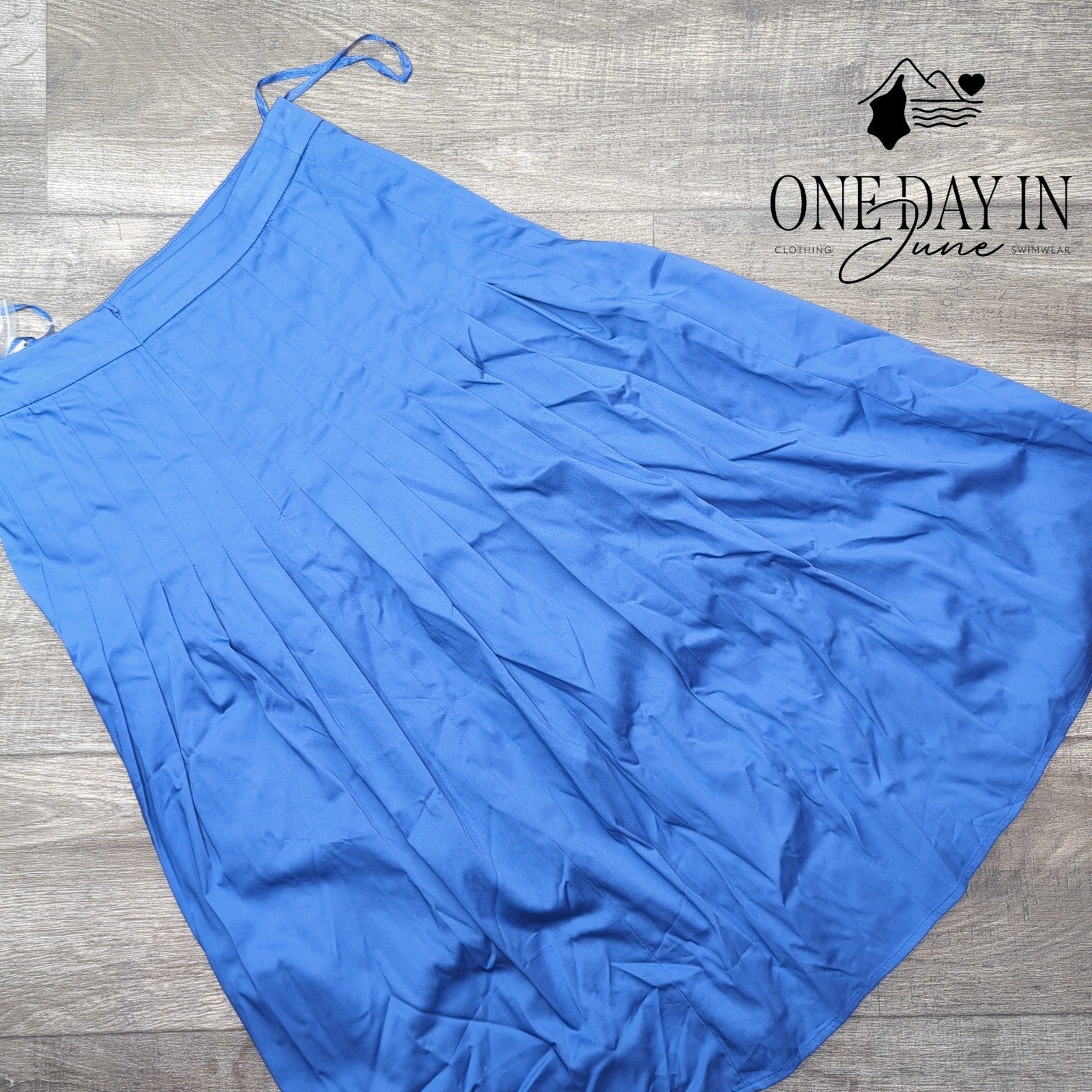 This blue beauty swirls and swishes with delightful ease, an A-line midi that's sure to please! With cotton-nylon-spandex blend so fine, this skirt will make you look divine and help you shine!