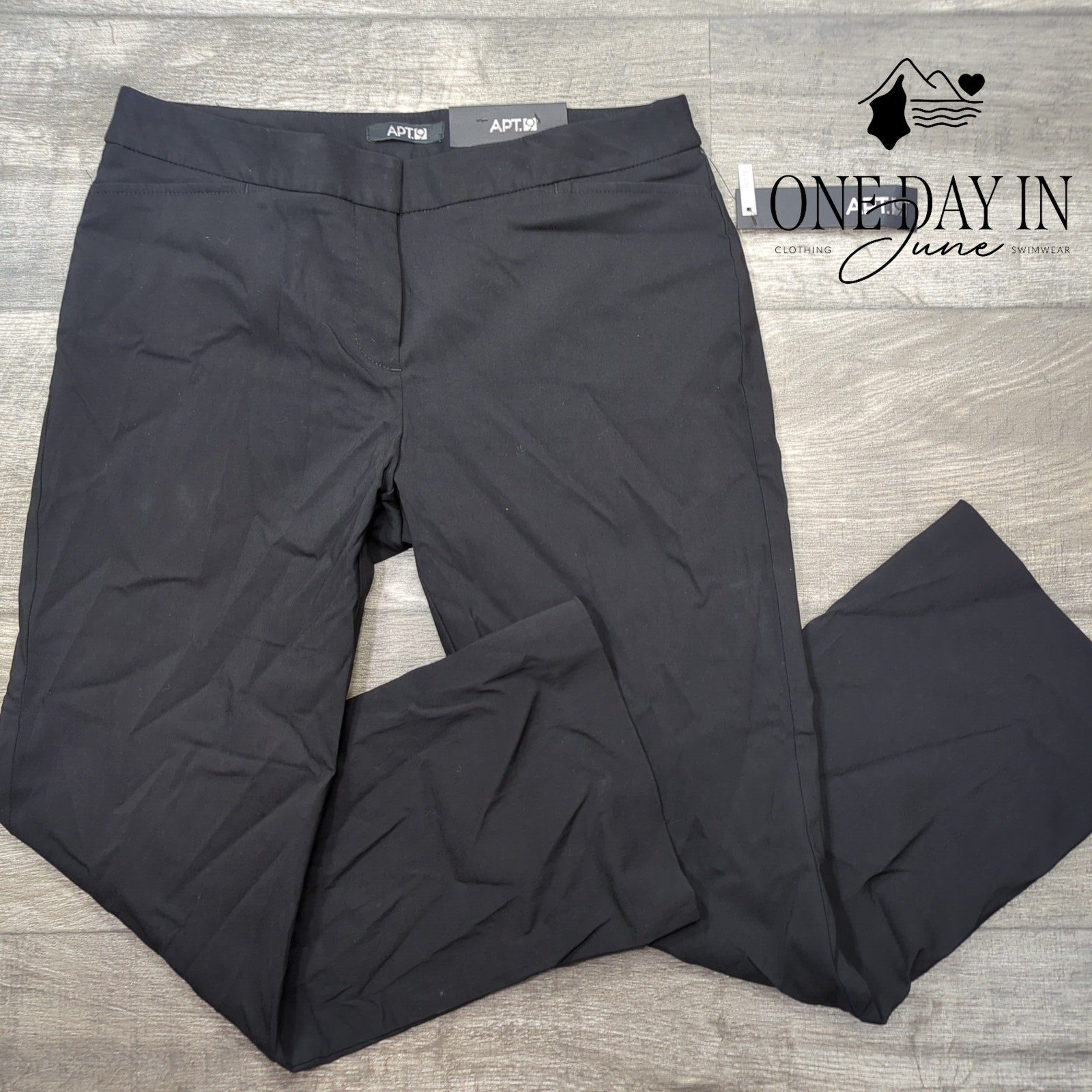 These handsome black trousers from Apt. 9 present a most agreeable silhouette with their flattering mid-rise cut, perfectly suited to the discerning lady of petite stature. Crafted from a delightful blend of rayon, nylon, and spandex, they promise both comfort and elegance for any occasion that requires refined attire. Indeed, what fortune to discover such well-tailored garments in pristine condition, complete with their original tags!