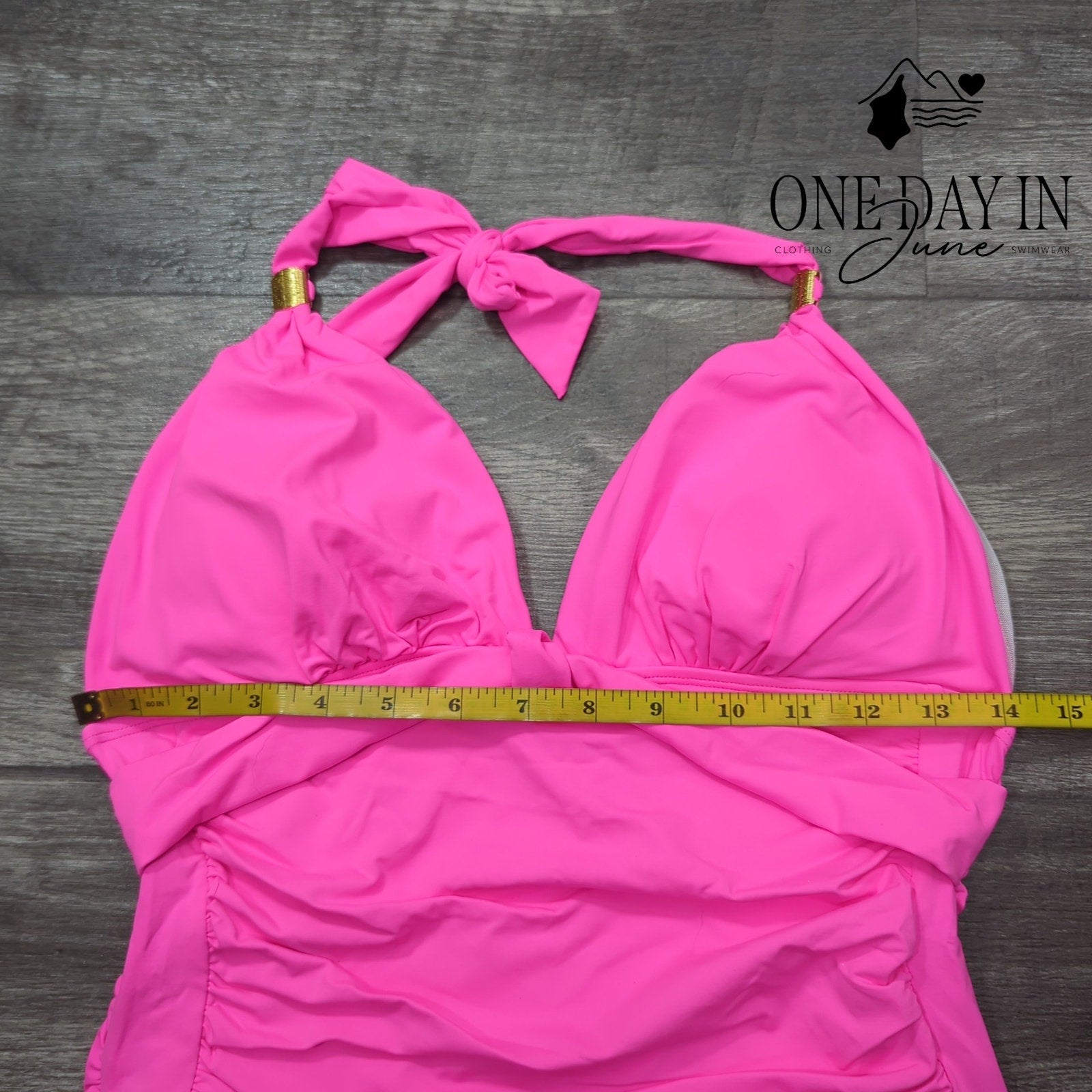 Aqua Eve Halter Tummy Control One Piece Swimsuit Size L