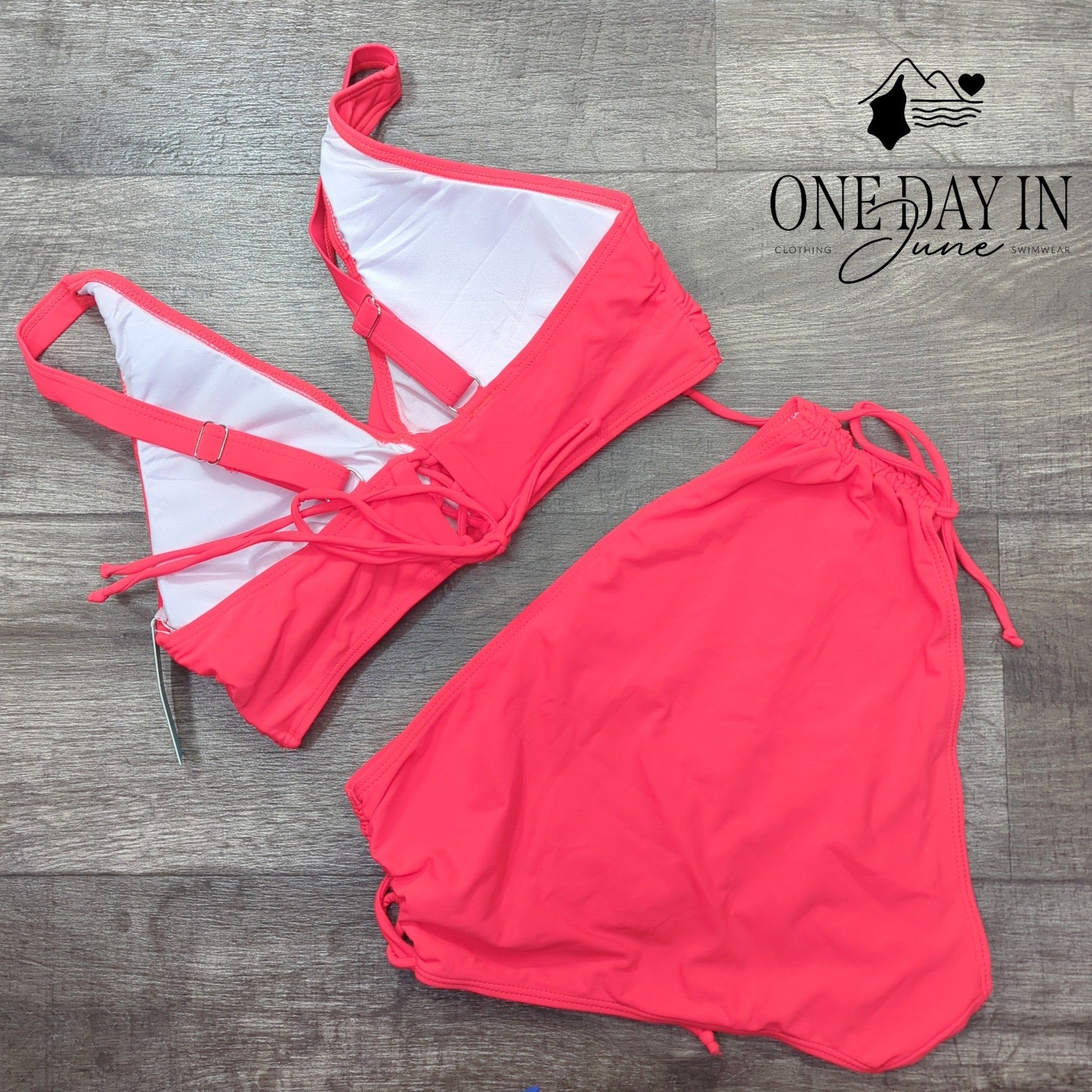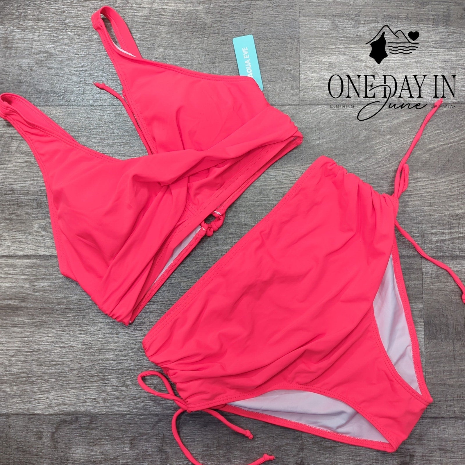 Aqua Eve High Waist Drawsting Tie back Bikini Swimsuit Size L