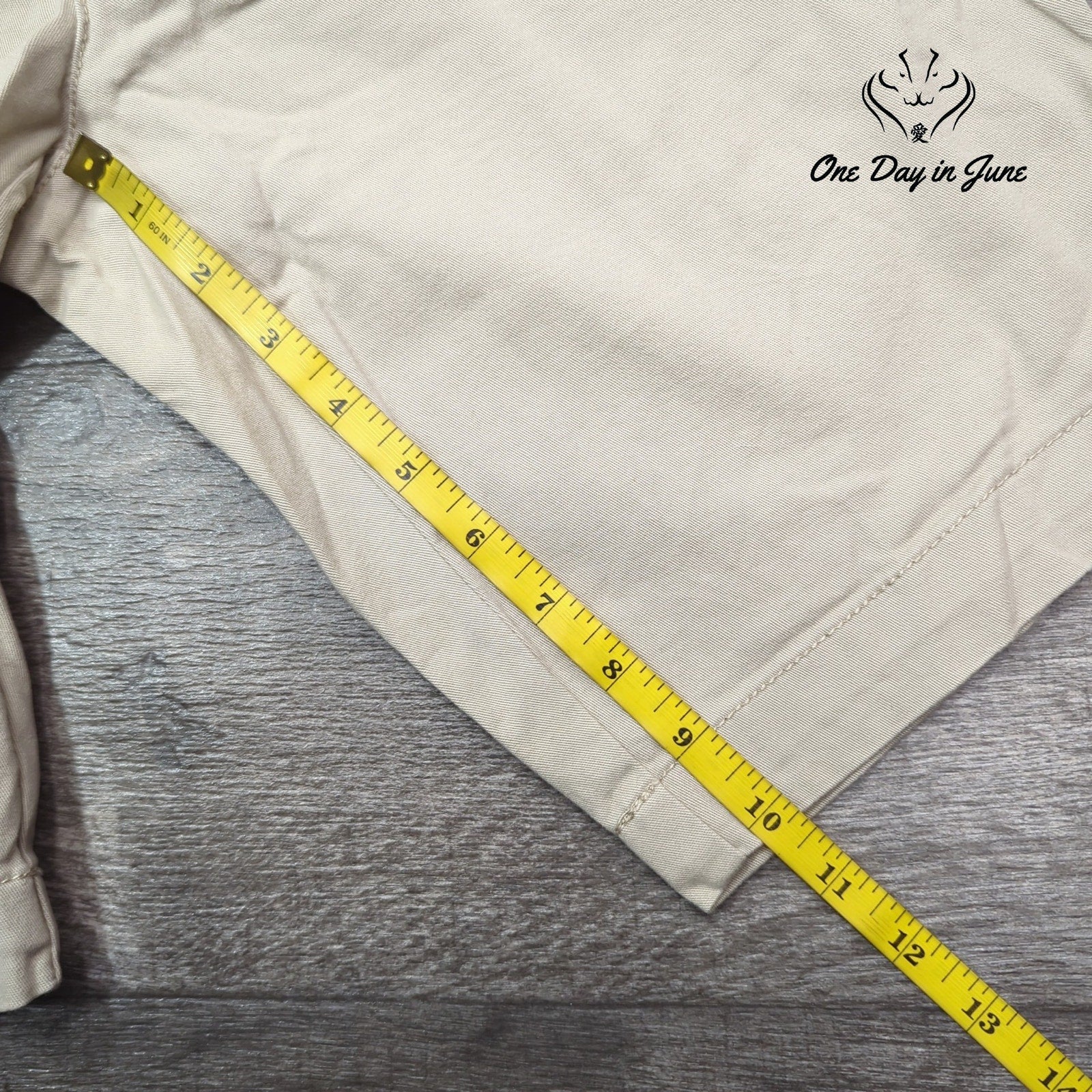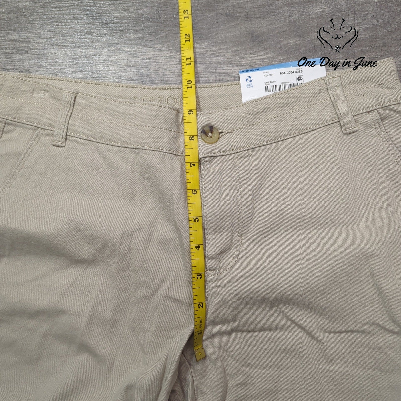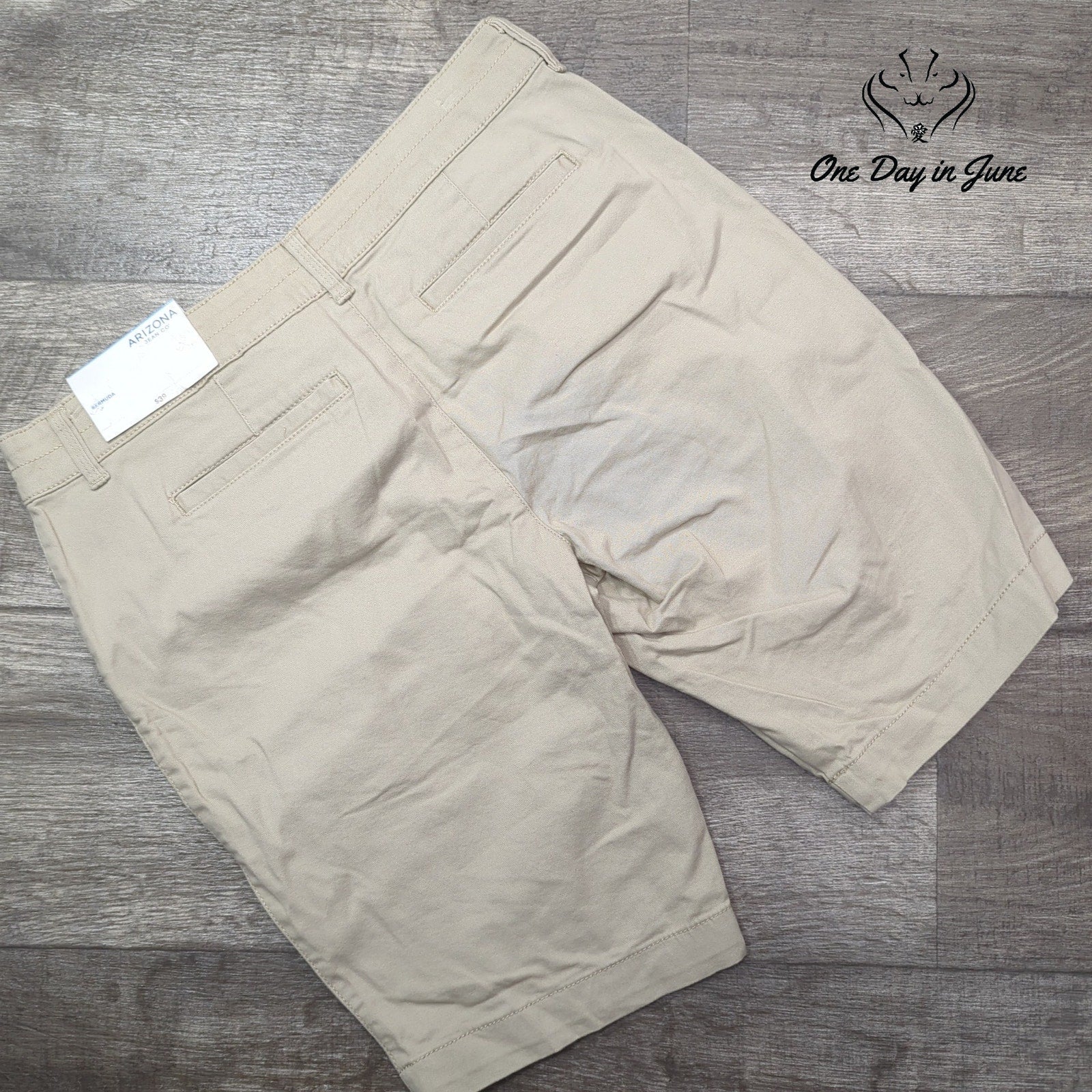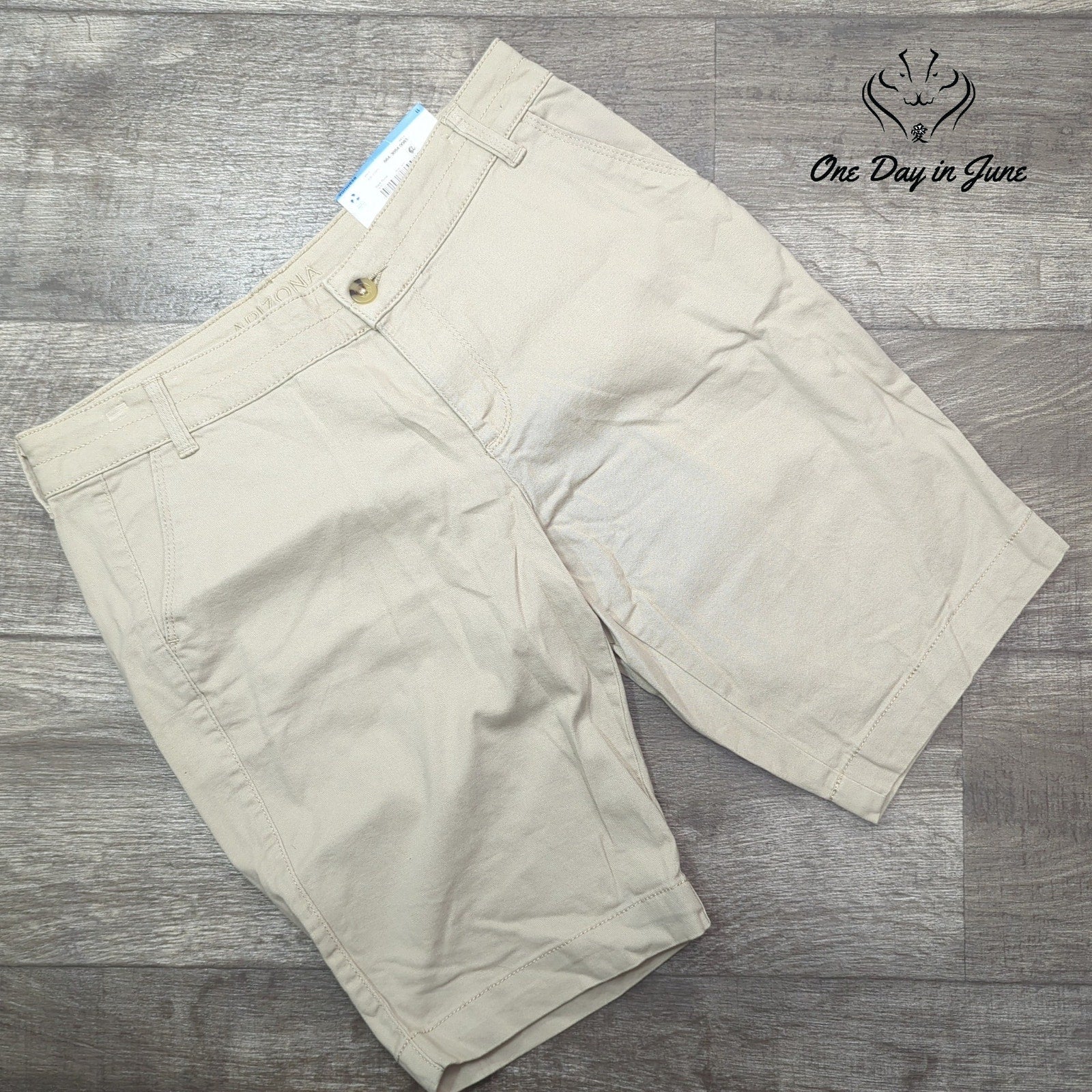 Good God, what savage beauty lies before us in these pristine tan Bermuda shorts from Arizona Jean Co, crafted with the kind of cotton-spandex blend that makes you want to drive through the desert at midnight with the top down and your legs stretched out the window. The clean lines and fresh-from-the-factory perfection speak to something primal in the American spirit, something that whispers of summer madness and endless horizons, complete with those original tags still dangling like tiny paper promises in the warm breeze.