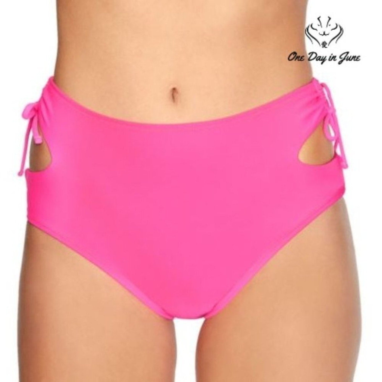 Embrace the sun-kissed allure of youth with this delightful pink bikini bottom. Arizona Jean Co. presents a charming piece that embodies carefree summer days, its polyester and spandex blend promising both comfort and style. New and untouched, it awaits its debut on golden sands or by shimmering poolsides.