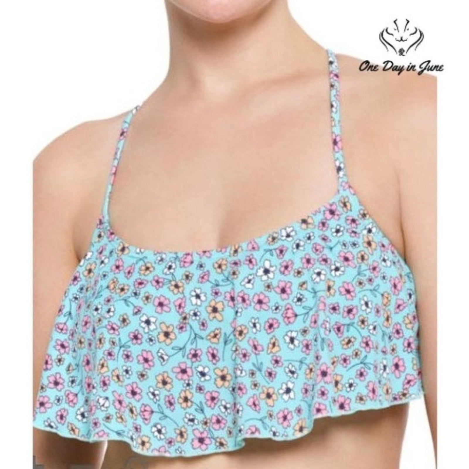 Dive into summer's embrace with this azure gem from Arizona Jean Co. A vision of oceanic allure, this juniors' bikini top beckons with its pristine newness, tags still affixed like whispers of promise. Crafted from a blend of polyester and spandex, it offers a dance of comfort and form, a siren song for sun-soaked adventures.