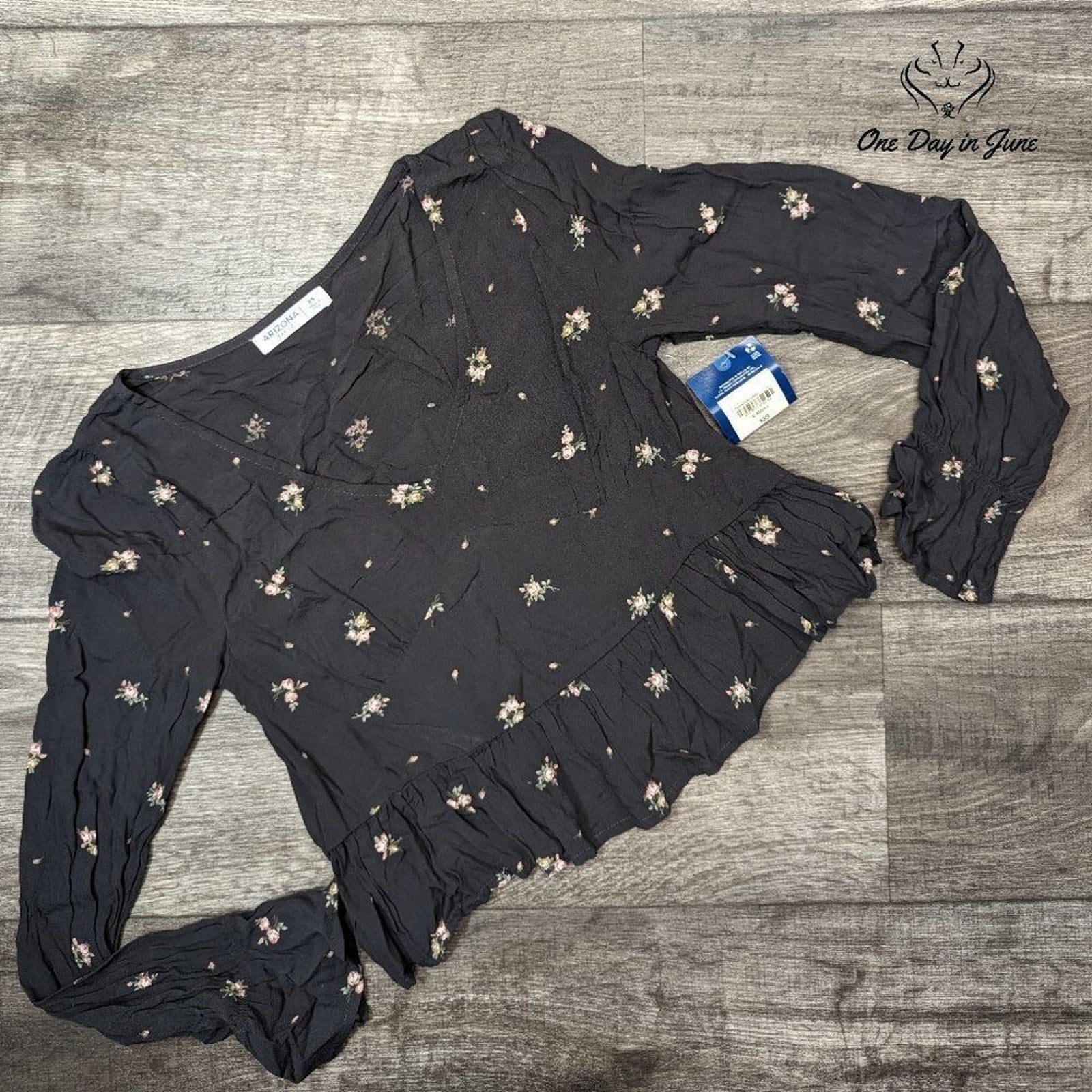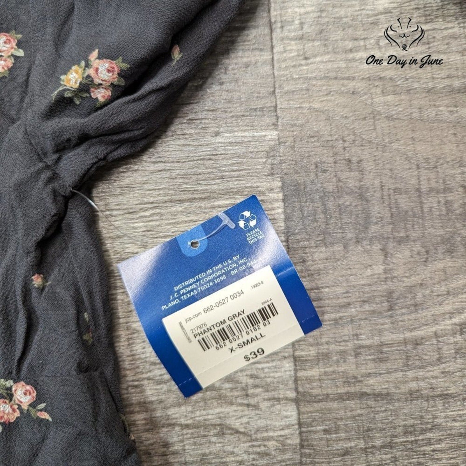 Immerse yourself in the bohemian vibe with this Arizona Jean Co. juniors long sleeve top. Fresh and new with tags, it features a versatile grey color and is crafted from high-quality rayon, promising utmost comfort and effortless style.