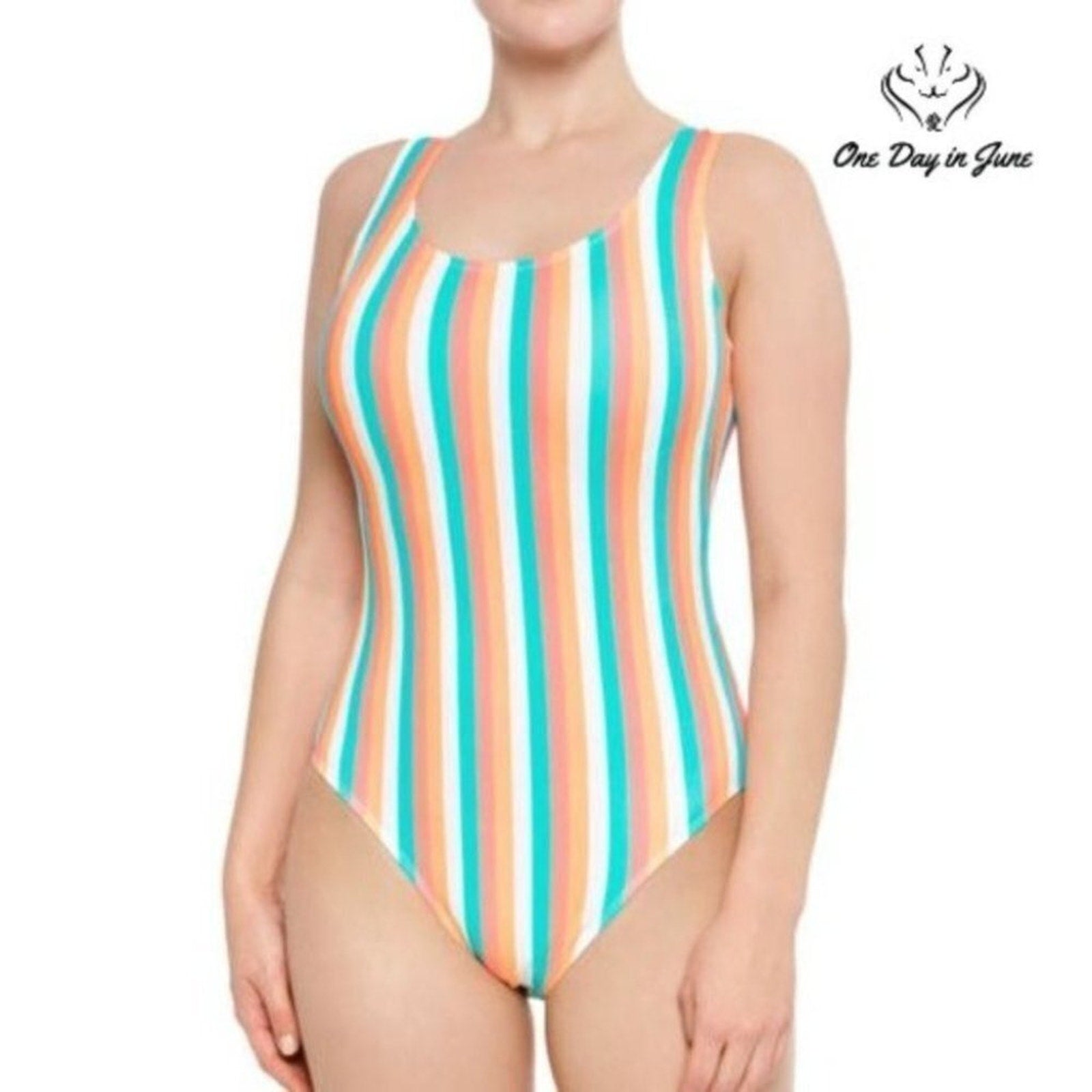 Radiant stripes of green and orange dance across this charming one-piece swimsuit, a vision of summertime splendor. Arizona Jean Co. has crafted a garment that whispers of carefree days and balmy nights, its polyester and spandex blend promising both comfort and allure for the modern ingénue.