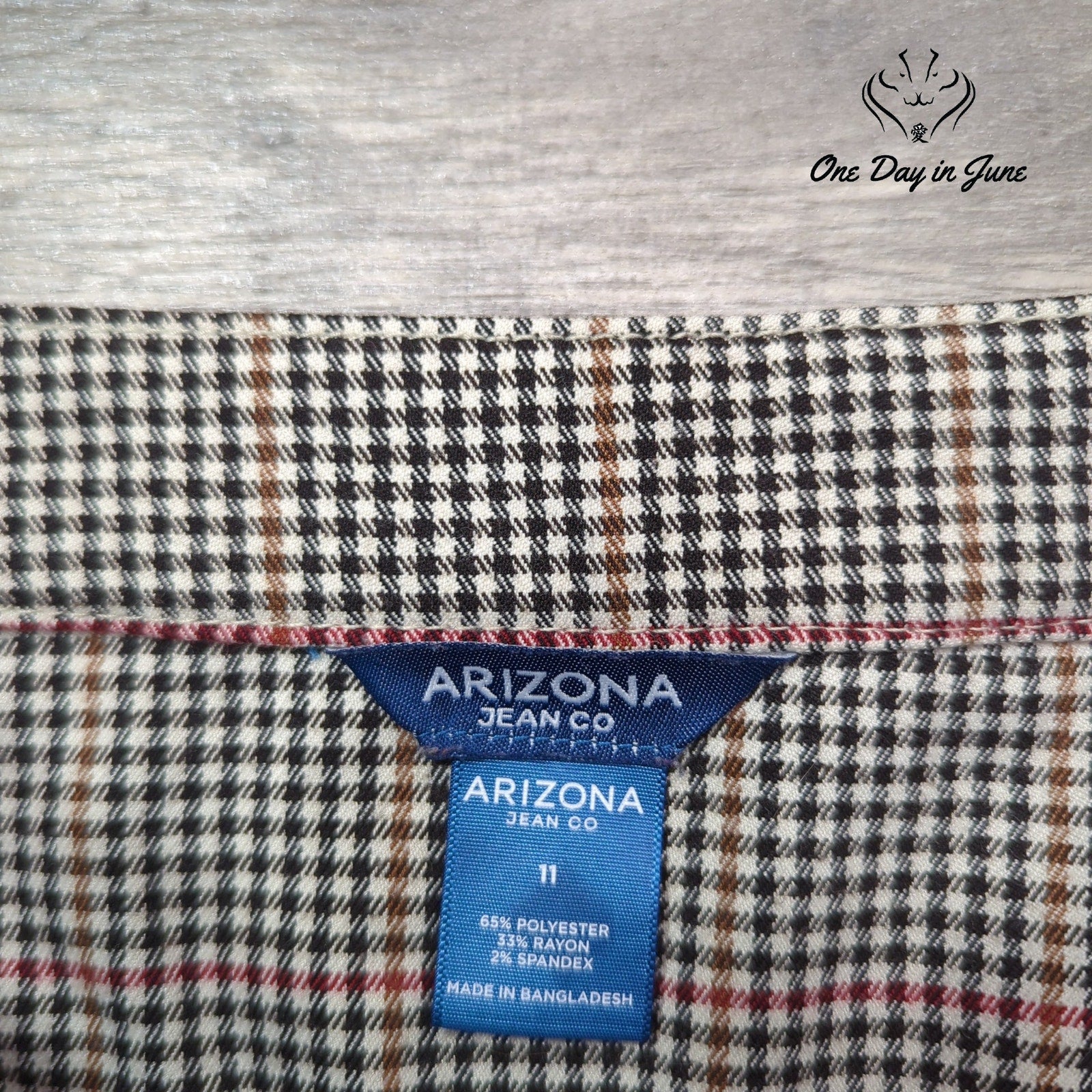 In a whirlwind of dark fabric and zippers, this Arizona Jean Co. skirt emerges like a fever dream from the depths of fashion's subconscious. It's a sinister blend of black and brown, a chromatic cocktail that screams rebellion against the tyranny of monochrome, all while clinging to the wearer with the tenacity of a desert lizard on sun-baked rocks.