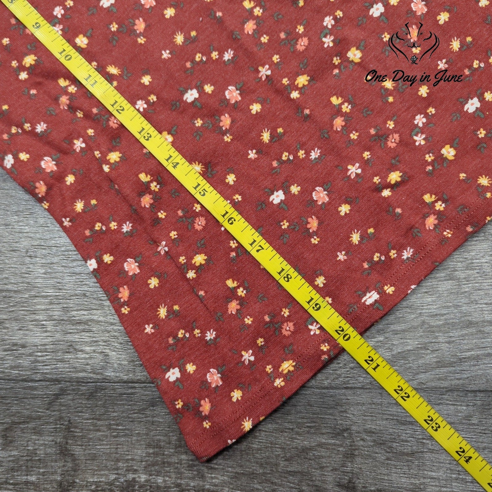 This charming floral tee from Arizona Jean Co. presents a delightful arrangement of blooms upon a most becoming brown fabric. The short sleeves and comfortable cotton-polyester blend make it an excellent choice for any young lady's spring or summer wardrobe, while its pristine, unused condition ensures the wearer shall make the finest impression.