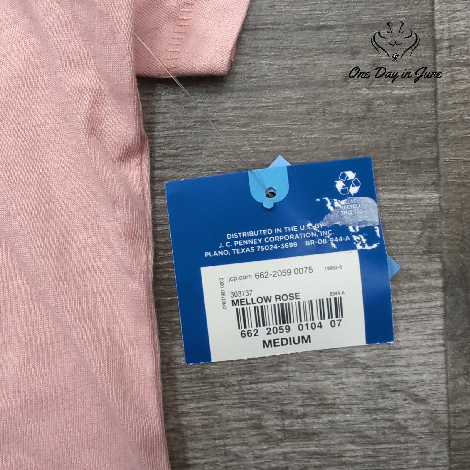 In a lovely shade of pink that's sure to make you wink, this Arizona Jean Co. tee is fresh and new with tags still clinging true! Made with cotton and polyester so soft and sweet, this short sleeve top will make your wardrobe complete.