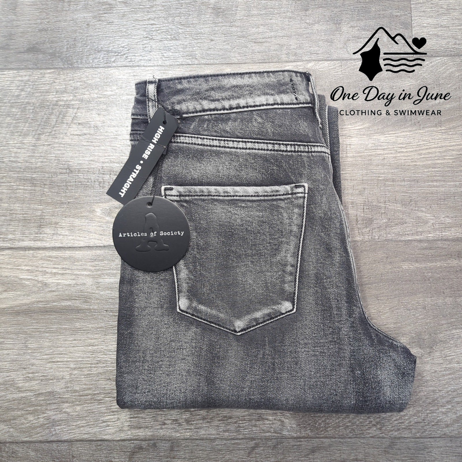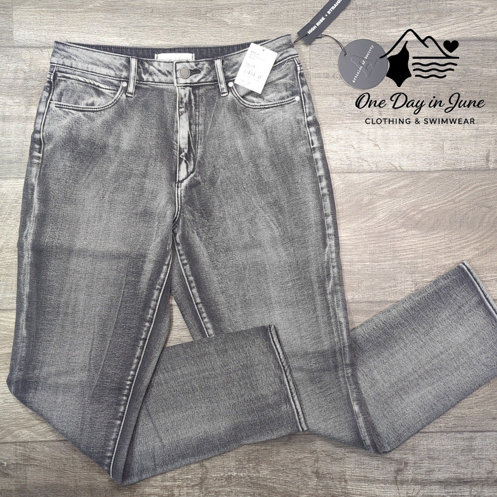 These super soft high rise jeans are straight and neat, in deepest black they can't be beat! With Articles of Society style that's oh-so-fine, they'll make your wardrobe truly shine.