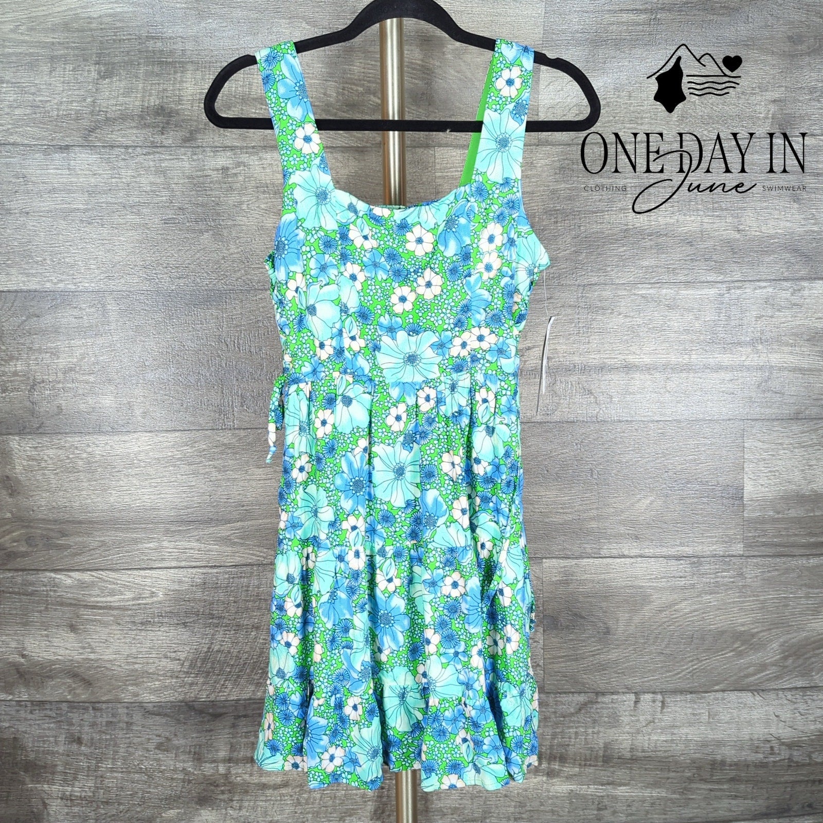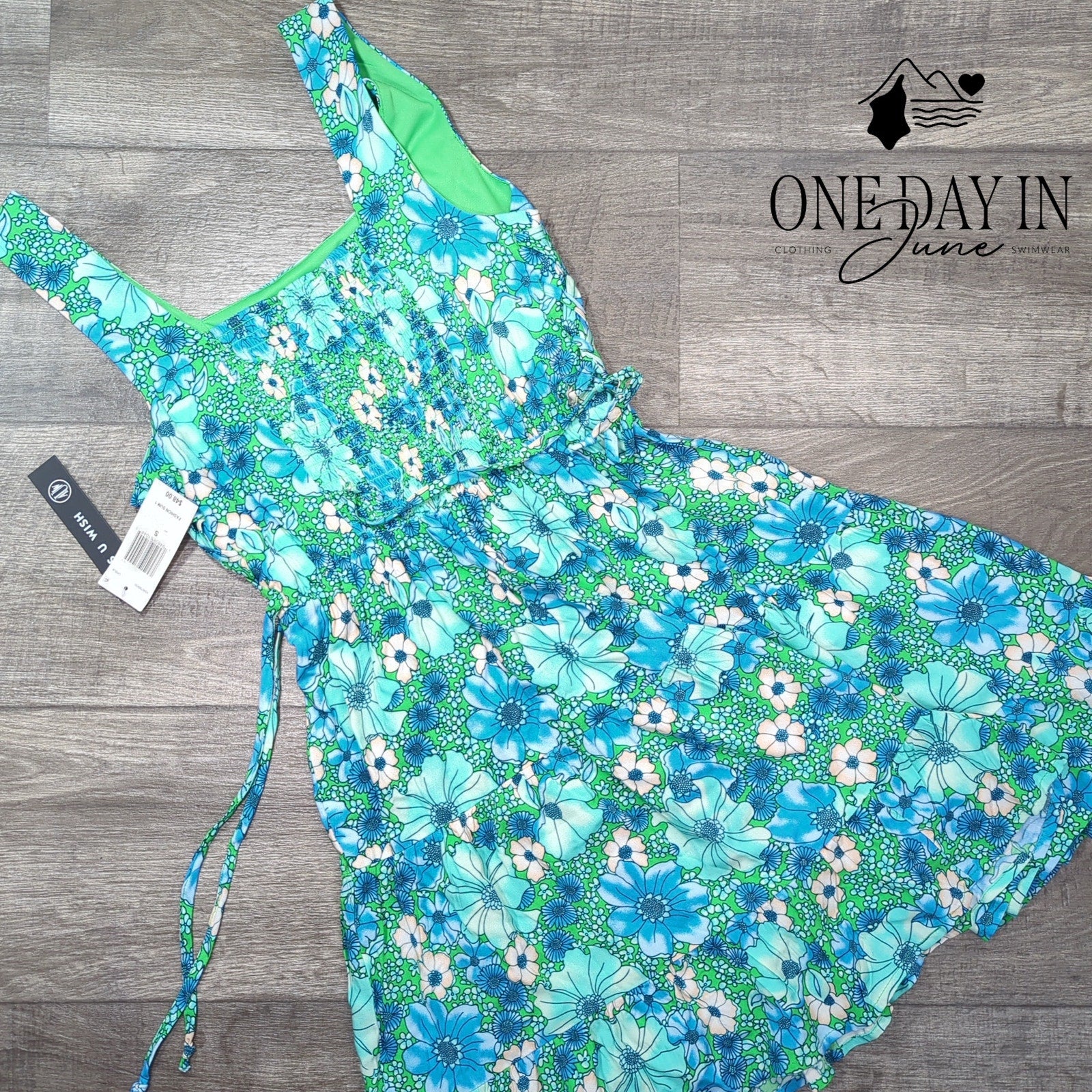 A verdant whisper of rayon that captures summer's fleeting promise, this sleeveless mini dress embodies youthful exuberance with effortless grace. Fresh from its maker with tags still attached, it speaks to those who believe every evening might transform into something extraordinary. Perfect for garden parties or moonlit escapades where hemlines dare to dance above the knee.