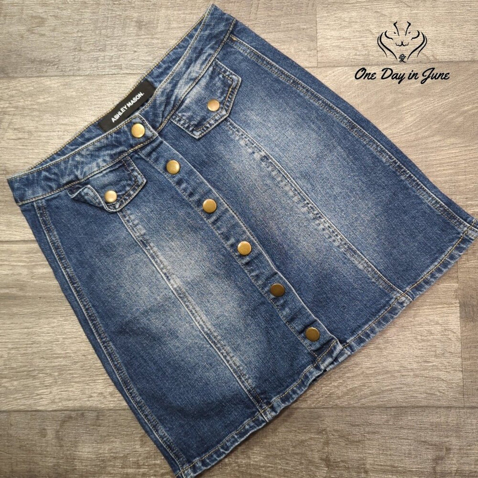 Ashley Mason Snap Front Denim Mini Skirt Size S