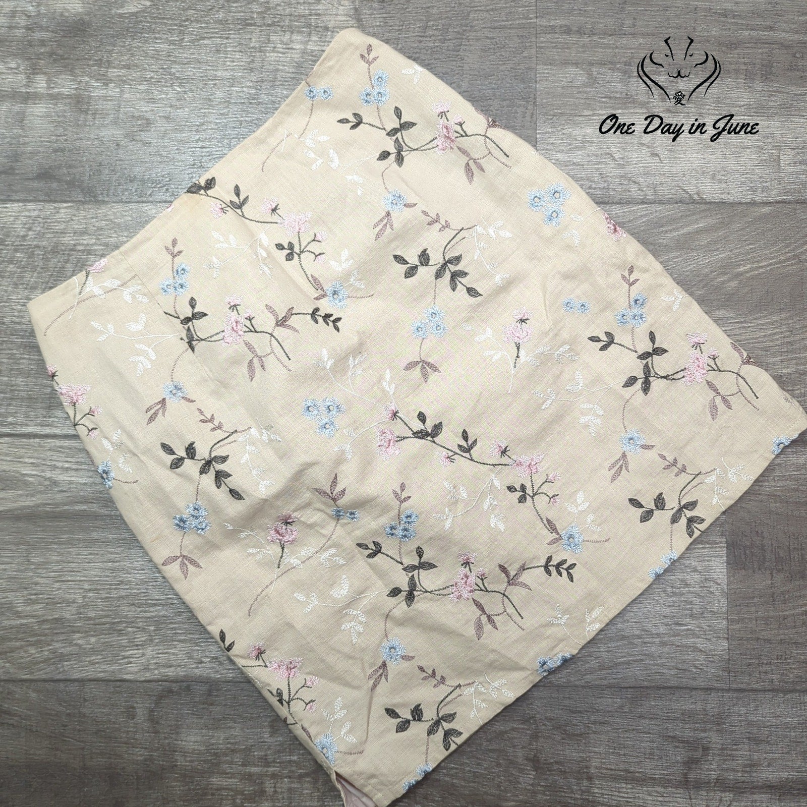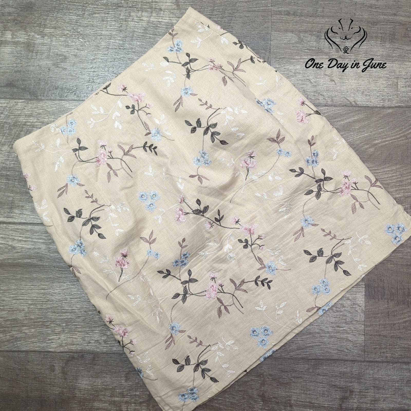 Witness the raw majesty of this tan embroidered skirt, a masterwork of linen and cotton fusion that dances with the wind like a dust devil in the desert heat. The delicate embroidery weaves tales of craftsmanship across the fabric, creating a mesmerizing pattern that could hypnotize even the most hardened fashion critic, while the pristine condition suggests it barely survived its first rodeo before being locked away in some climate-controlled vault.