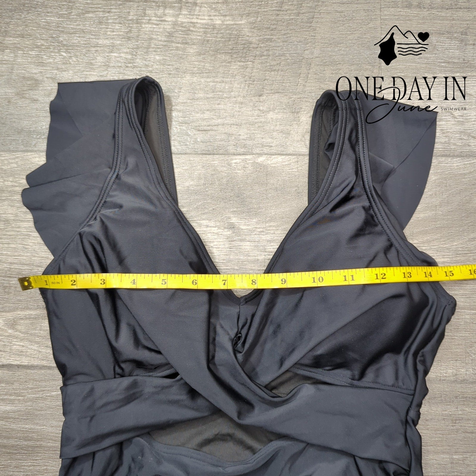 B2Prity Cross Front Cut Out Ruffle Shoulder One Piece Swimsuit Size M