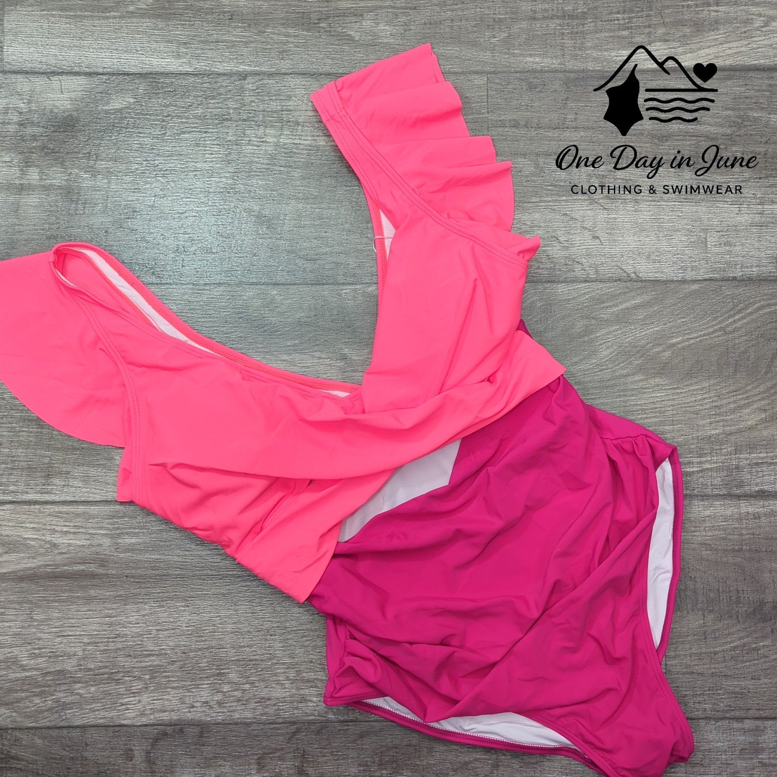 Tags: #PlusSizeSwimwear #PinkSwimsuit #OnePickSwimsuit