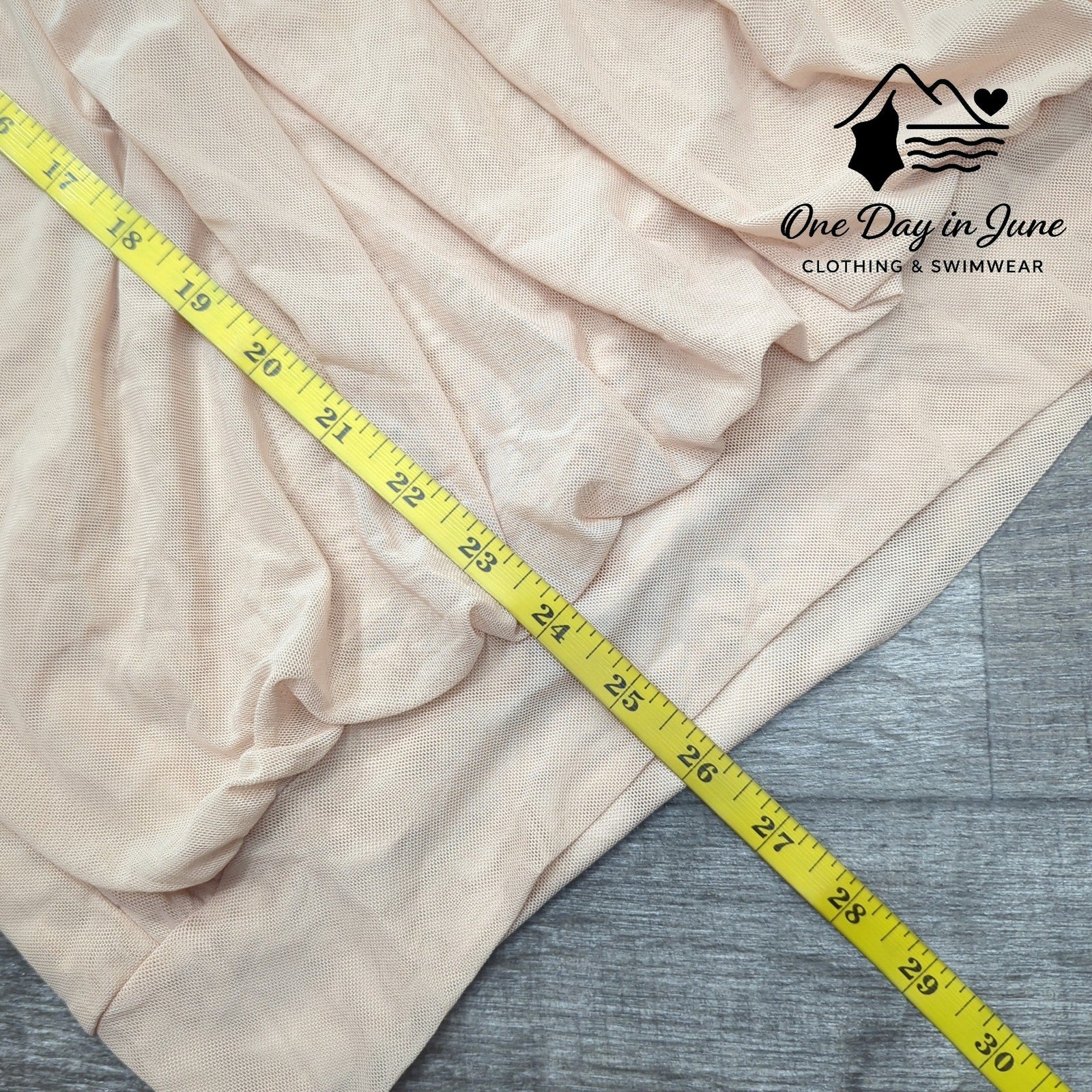 Beige like the Nevada desert at high noon, this tan mesh masterpiece will burn a cosmic pattern into your wardrobe faster than you can say "bat country." The long sleeves wrap around your arms with the gentle constriction of a python who's taken a vow of non-violence, while the stretchy polyester-elastane blend contours to your body with the precision of a government surveillance operation during a full moon.