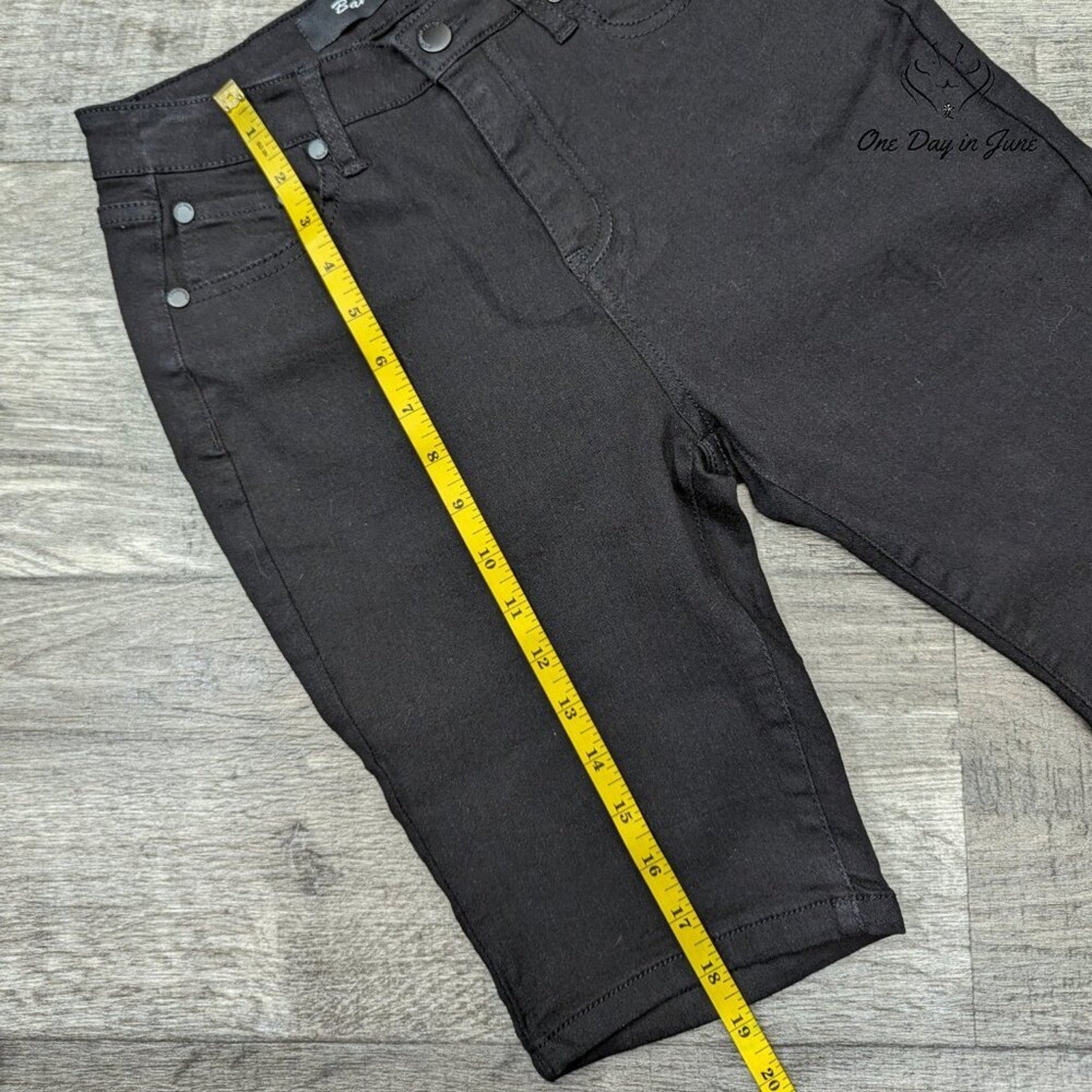 Plunge headfirst into a black Bermuda denim vortex, brand spankin' new, branded by Bamboo, a tale woven from cotton, polyester and spandex. It's a wild ride, these shorts, a symphony of materials designed for the modern woman - an ensemble for those with the audacity to turn heads and bend norms. Dare you to buckle up and embrace the chaos?
