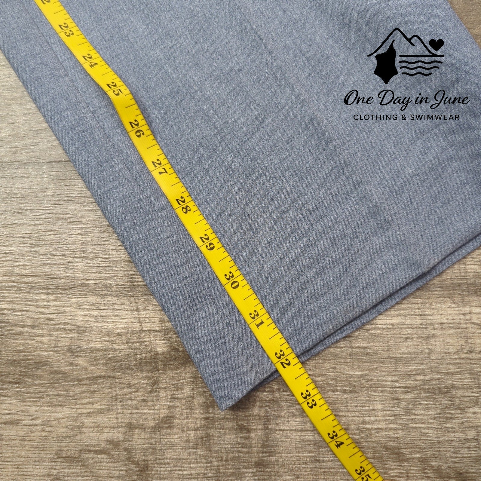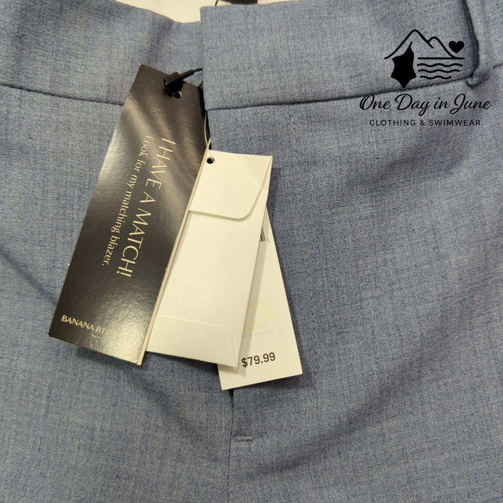 I'm tearing through the savage underbelly of fashion when these blue trousers from Banana Republic ambush my senses – virgin merchandise still adorned with retail bondage in the form of dangling price tags. The fabric is a wild cocktail of polyester, rayon, and spandex, creating a mid-rise silhouette that clings to reality while simultaneously transcending it – the perfect armor for navigating the twisted journey through corporate America or weekend debauchery.