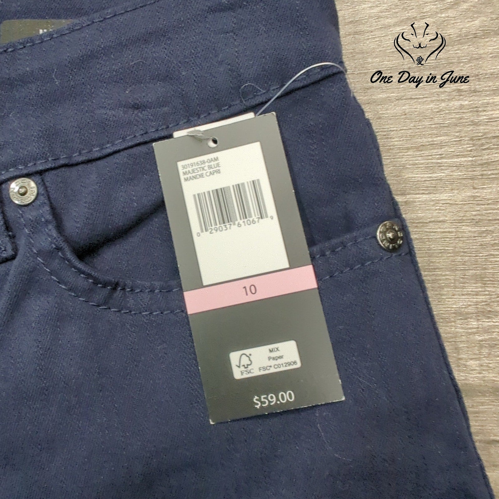 Oh, what a delight, these Bandolino Mandie Capris in deepest black, pristine and new, ready to shine upon your back! They're made of cotton with a touch of stretch to make them fit just right, perfect for strolling through your day or dancing through the night.