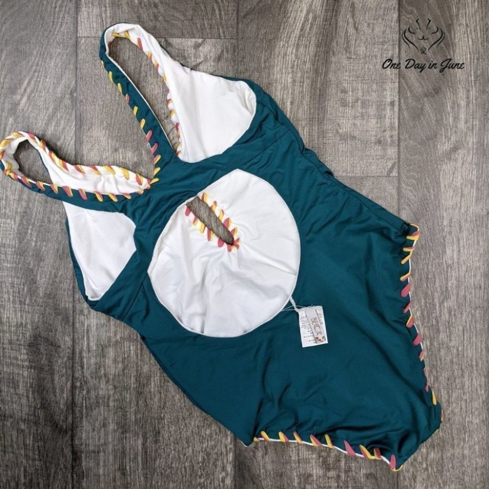 In a savage twist of poolside fashion destiny, this pristine Becca Camille one-piece swimsuit delivers a double-barrel dose of style with its mind-bending reversible design in mesmerizing green. The sleek silhouette writhes and contorts with impossible grace against sun-drenched skin, clinging with reptilian confidence as you stalk the beach like some kind of aquatic apex predator.