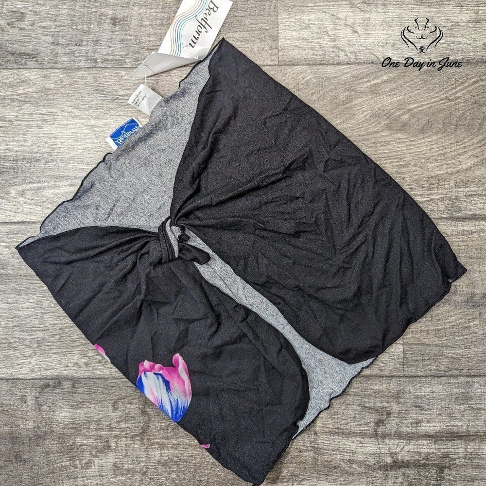This Bestform coverup, as black as the night, wraps around you just right, a sight quite out of sight! Made of nylon, it's a floral sarong dream, feels as good as it seems, perfect for a beachy scheme.