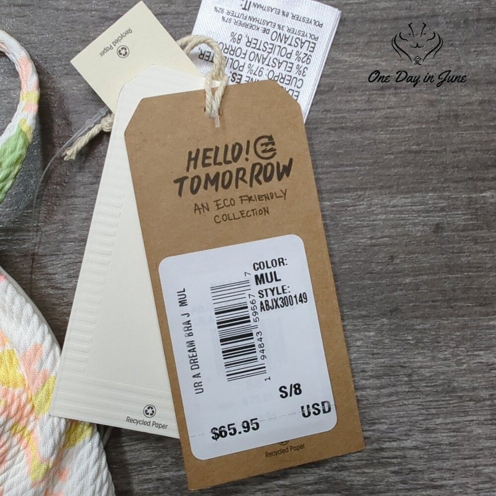 Indulge your coastal daydreams with the enchanting allure of the Billabong UR A Dream Bikini Top. This vibrant piece, resplendent in a multitude of hues, promises both style and comfort, making it a splendid addition to your summer wardrobe. New with tags, it awaits its maiden voyage to the shores.