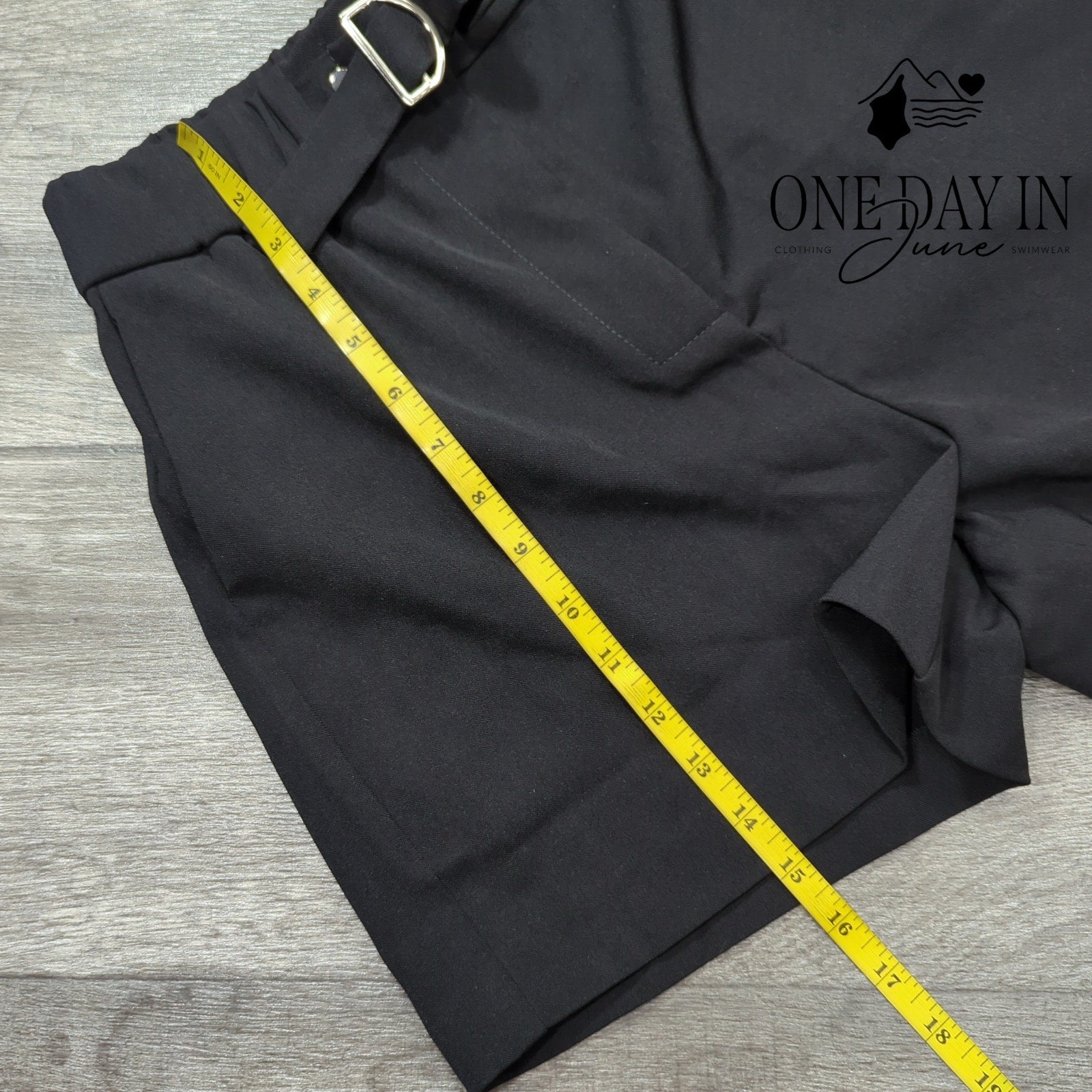 Tags: #DRingBeltedShorts #WomensBlackShorts