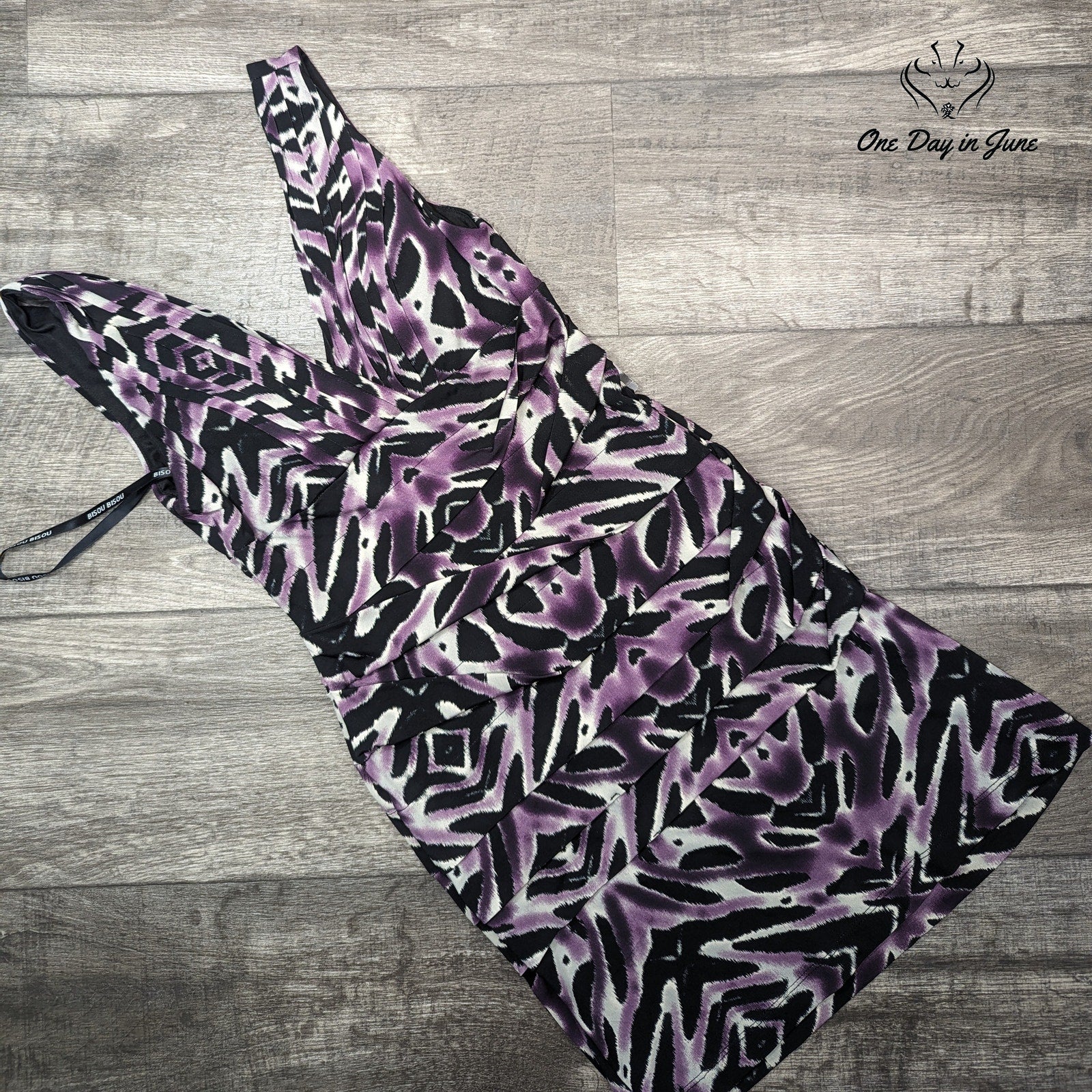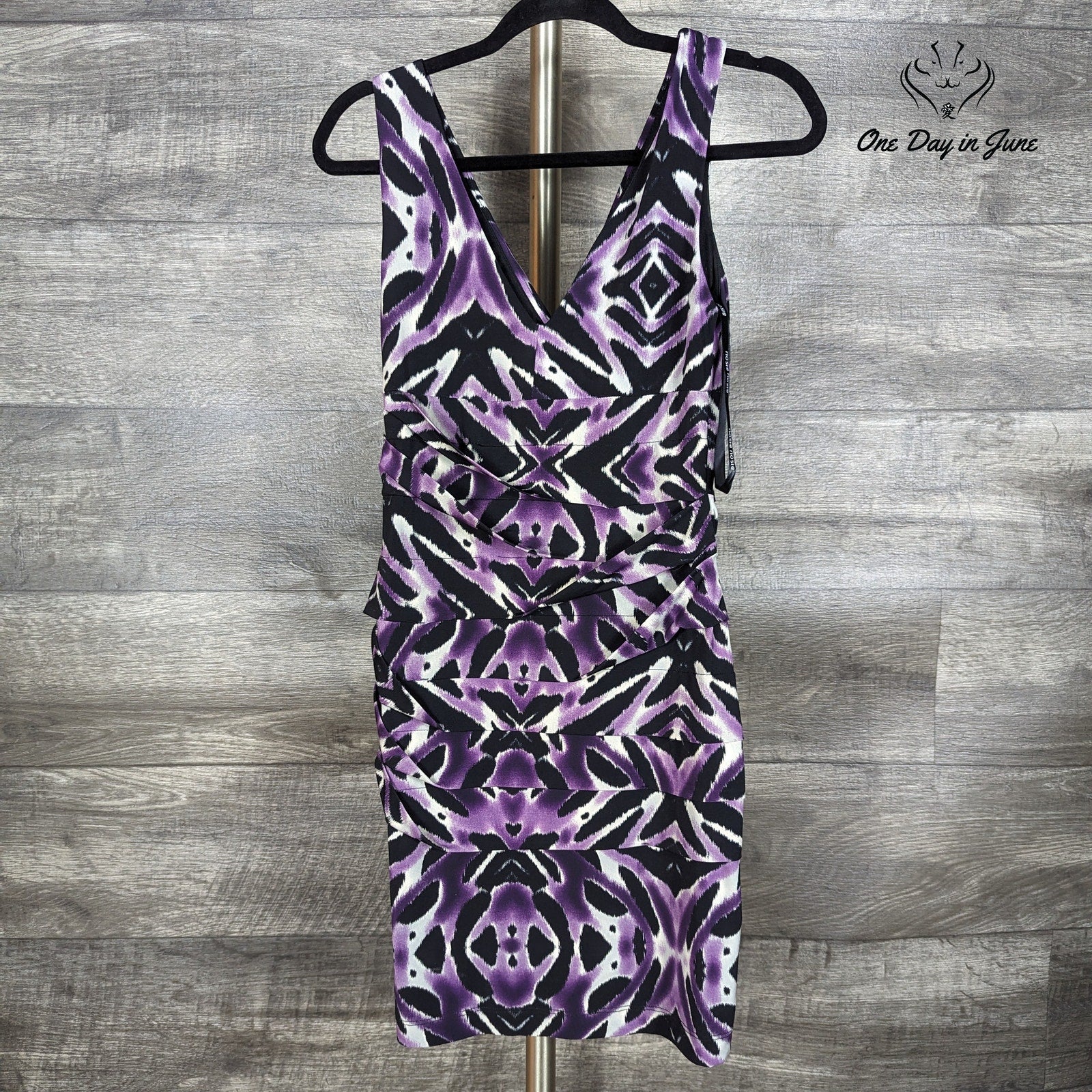 Turn heads in this stunning purple Bisou Bisou sleeveless tiered mini dress. New with tags, this women's dress is crafted from a comfortable and sleek polyester/spandex blend for a flattering and resilient fit. This ultra-chic piece is perfect for any special occasion.