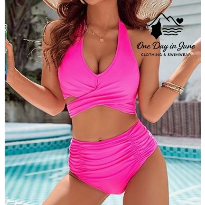 Tags: #BloomingJellySwimwear #HalterBikini #PinkSwimsuit