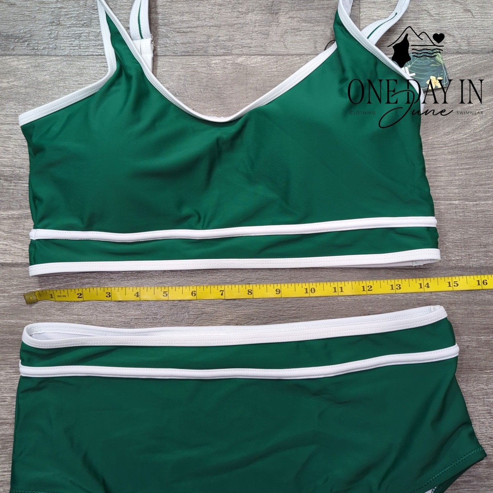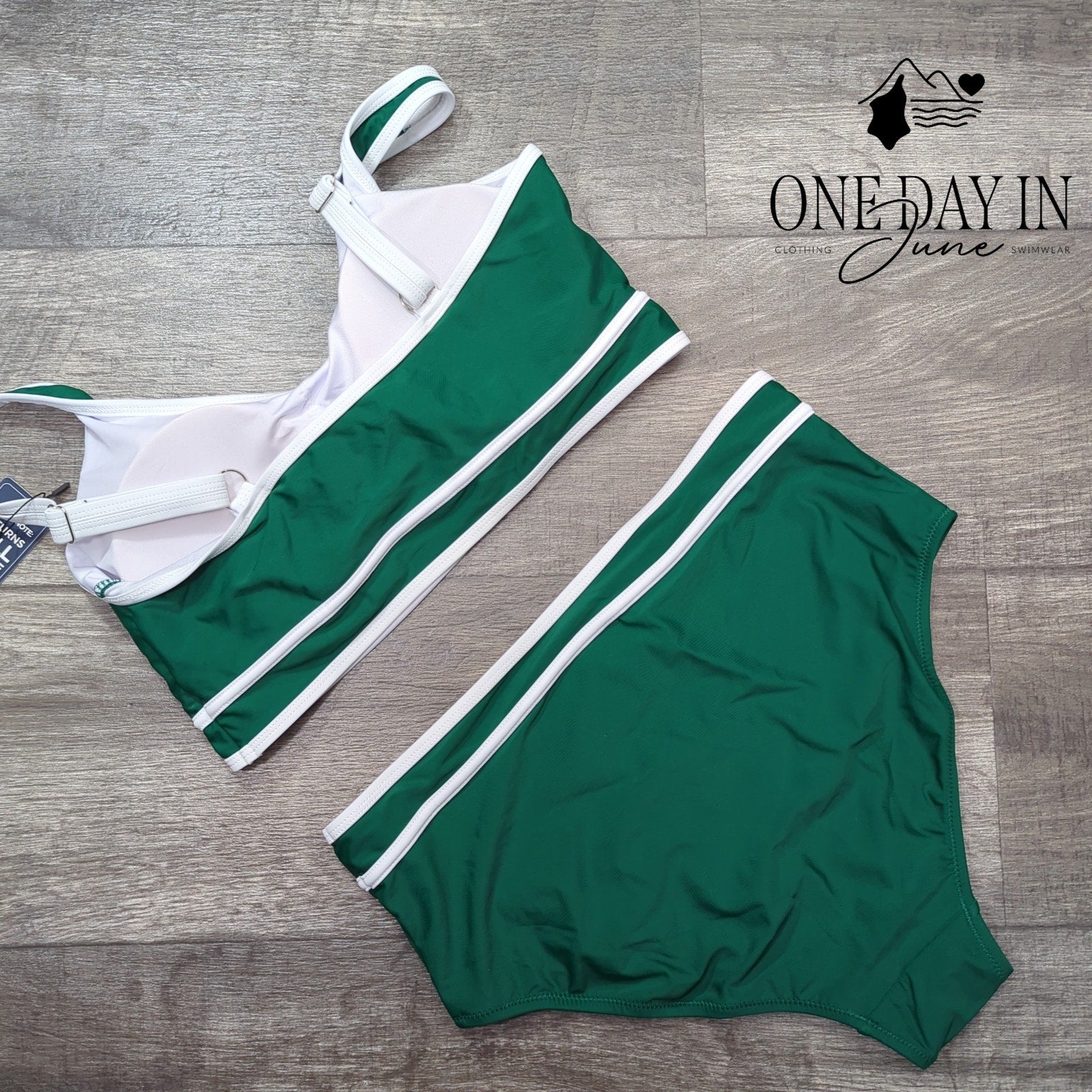 This green bikini brings summer cheer with a high waist that's oh-so-dear! The crop top style will make you glow, perfect for the beach where you'll steal the show!