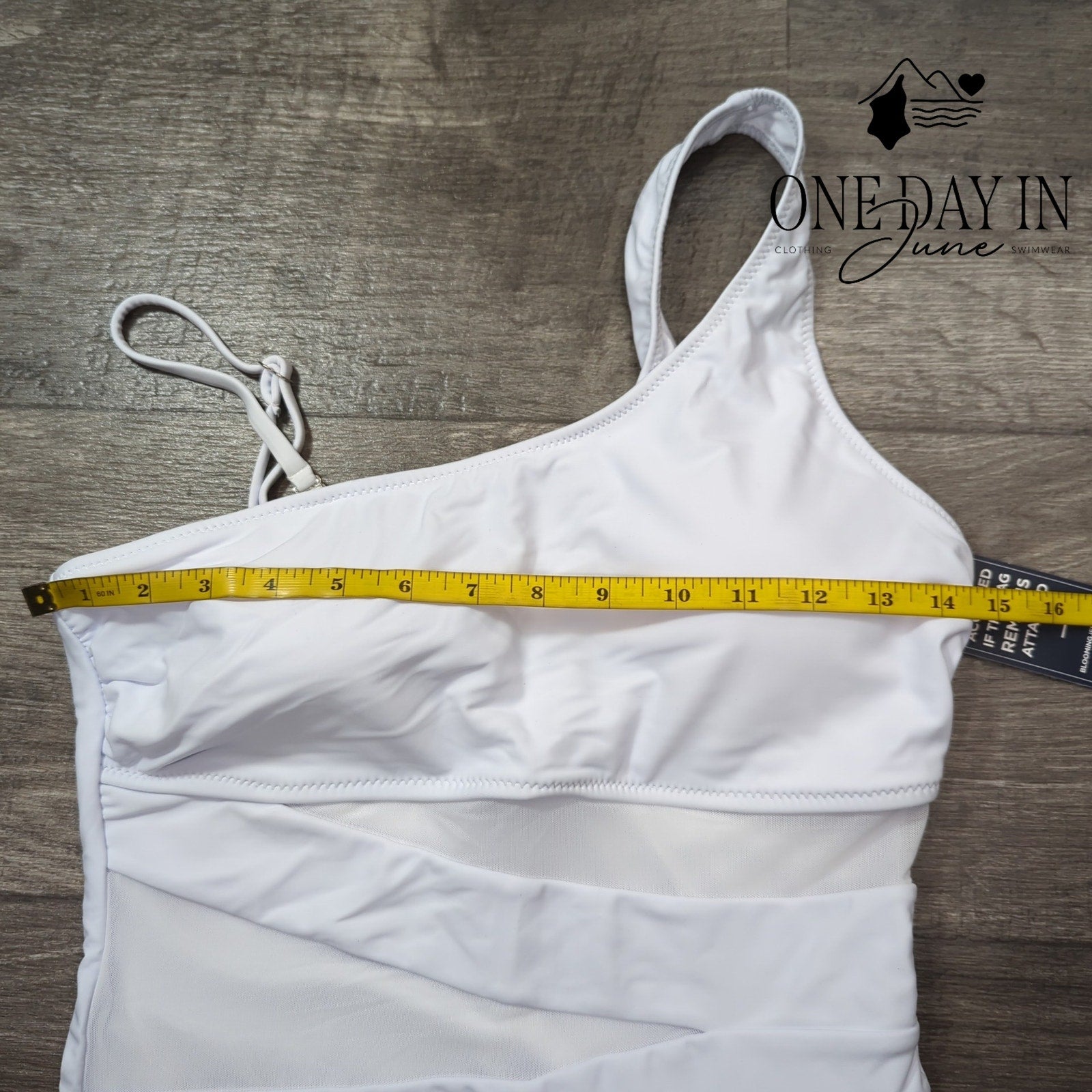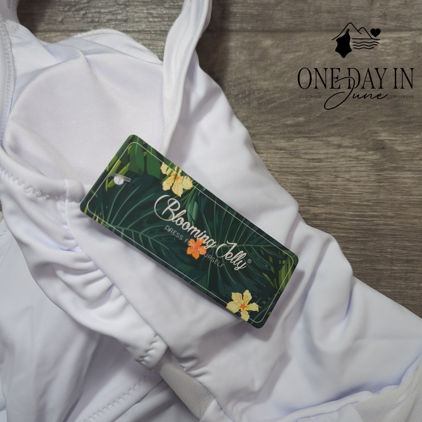 Tags: #BloomingJelly #WhiteSwimsuit #OneShoulderSwim