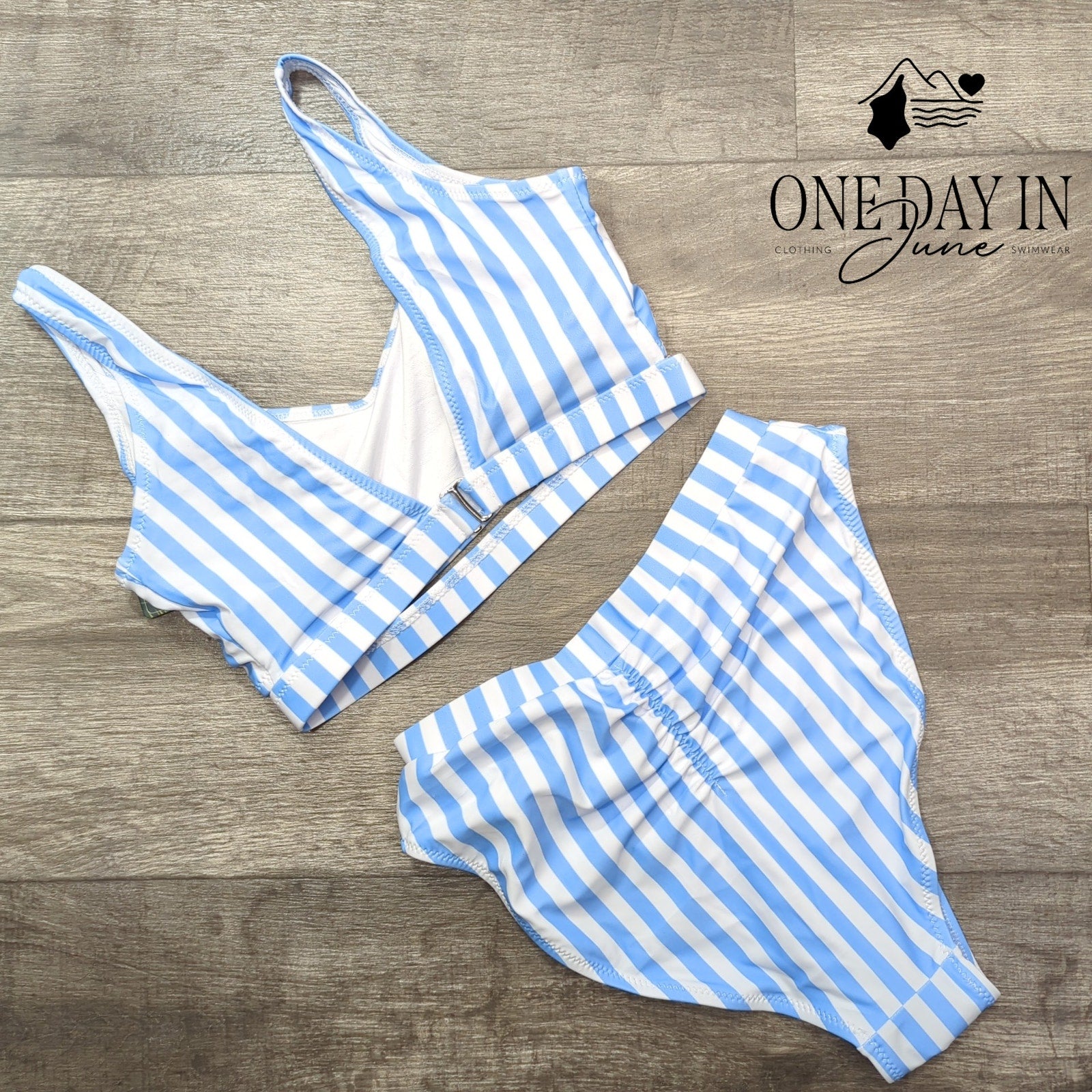 Blooming Jelly Striped Crop Cinched Bottom Bikini Swimsuit Size S