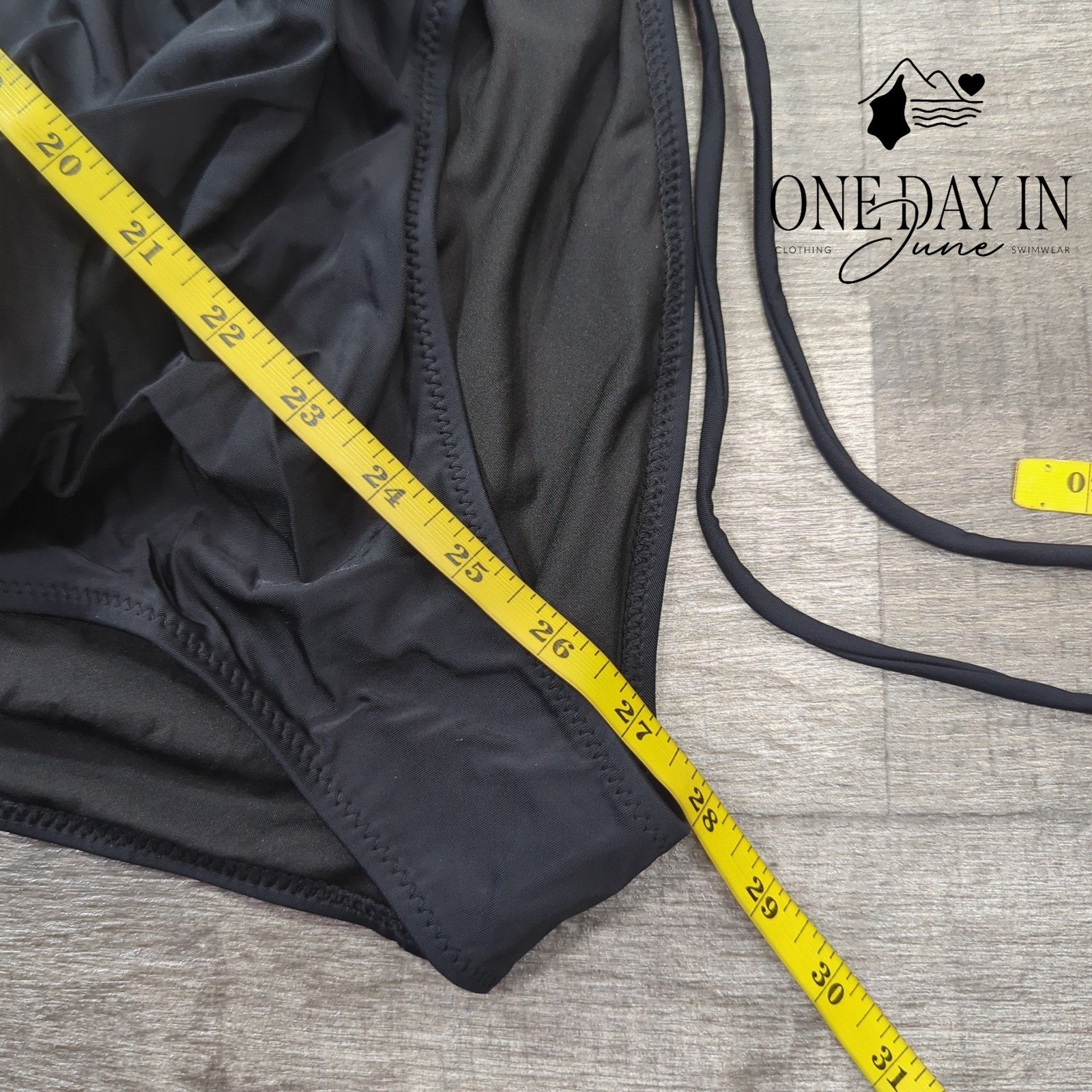 A sleek black one-piece that understands the quiet confidence of control, crafted from a supple blend of polyester and spandex that moves like midnight water. This Blooming Jelly creation promises both elegance and support, a modern marvel for those who seek grace at the water's edge. New with tags, it awaits its moment beneath the sun.