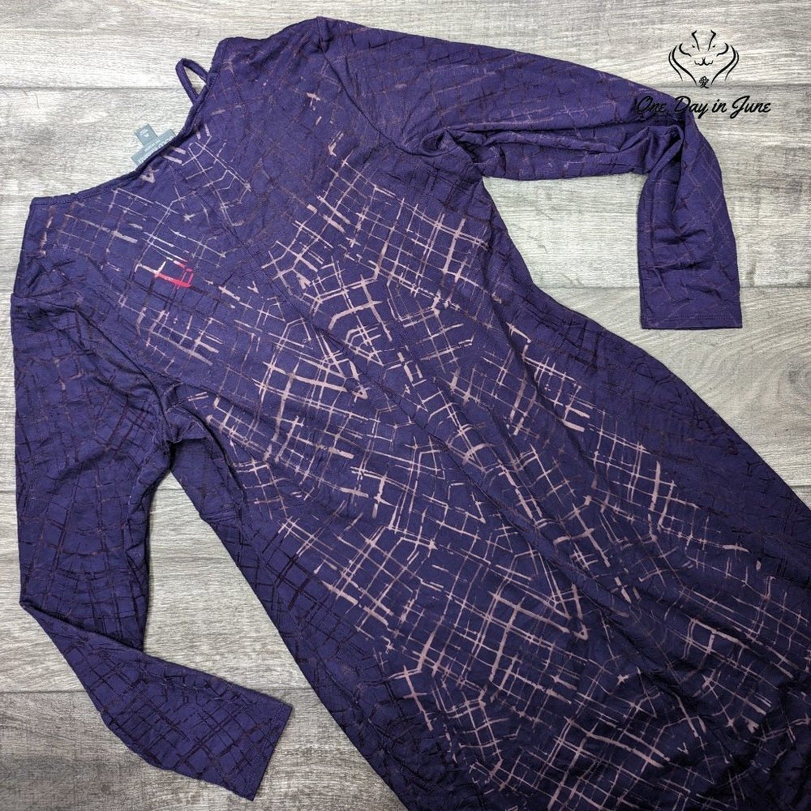 With a sheer layered design that's utterly fearless, this new Bold Elements dress is truly peerless. Crafted in a purplr hue with just the right flex, rayon, polyester, and spandex conspire to make you the apex.