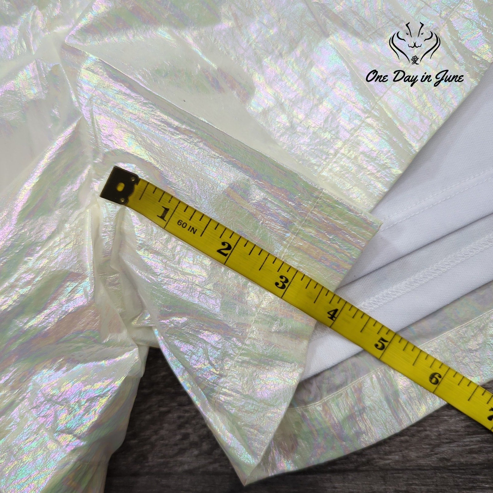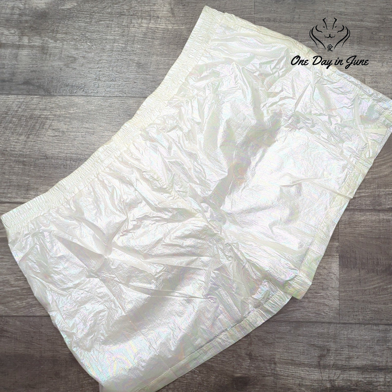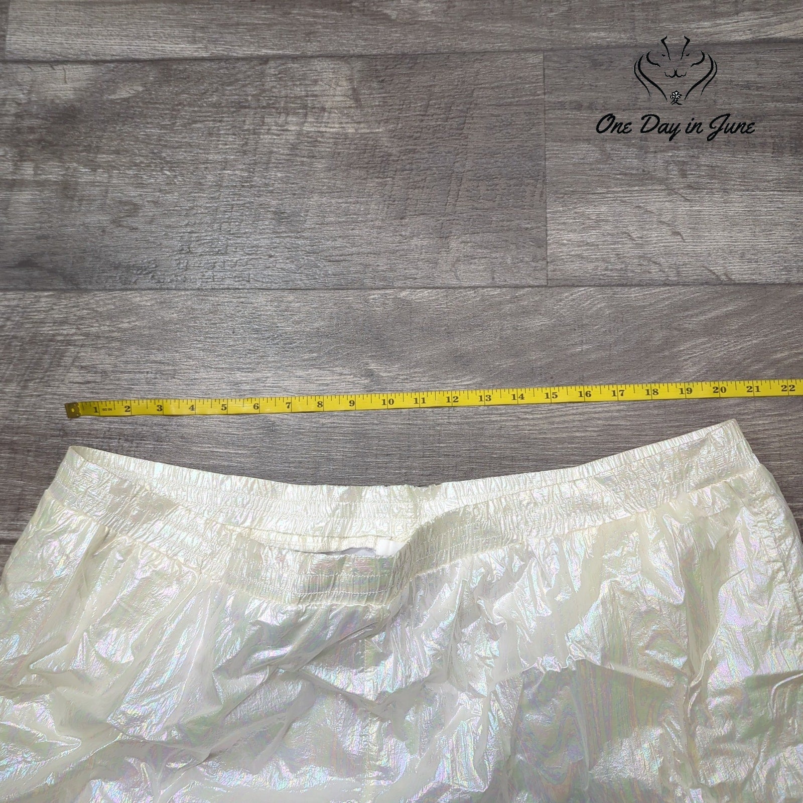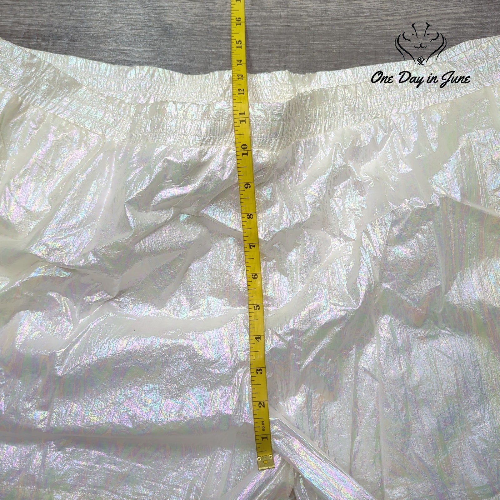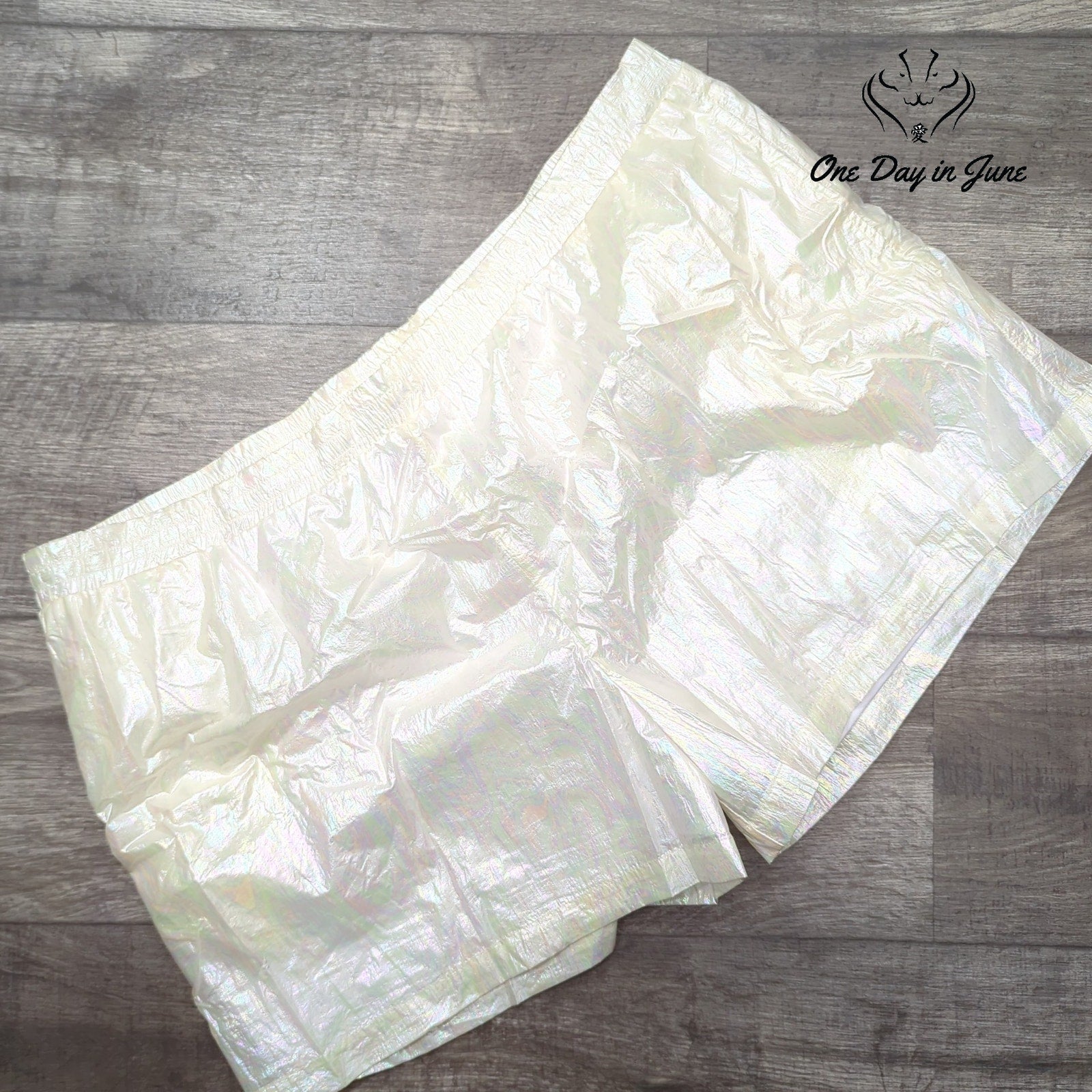 Behold, dear ladies, these resplendent shorts of shimmering white, crafted to flatter the fuller figure with grace and élan. Though they have not yet graced a wardrobe, they stand ready to become the crowning jewel of your summer attire, their lustrous exterior promising to catch the eye of many an admirer at garden parties and promenades alike.