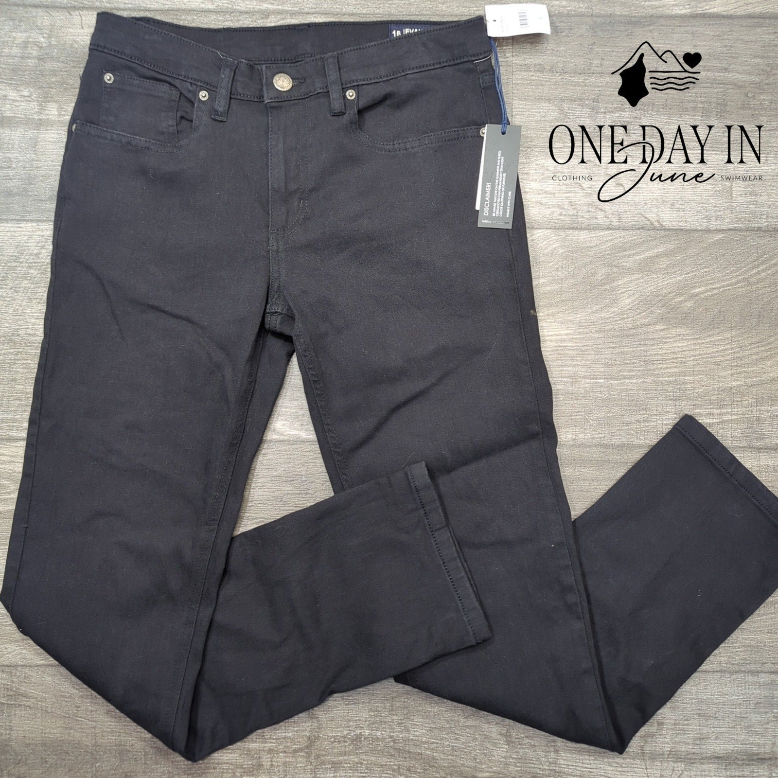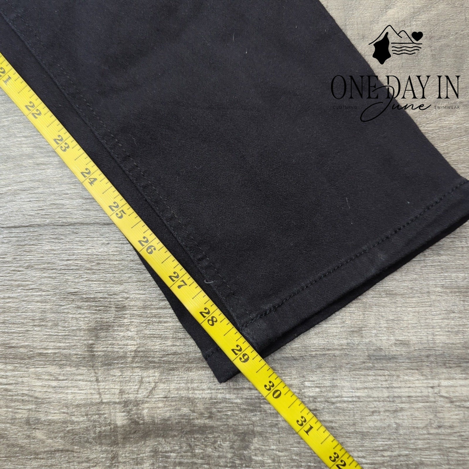 These Buffalo David Bitton Evan straight leg jeans embody timeless elegance with their classic black hue, crafted from a sophisticated blend of cotton, polyester, and spandex. Like shadows dancing across moonlit pavement, they promise both comfort and enduring style. A testament to refined taste, these pieces arrive pristine with original tags, ready to grace the wardrobe of the discerning woman.