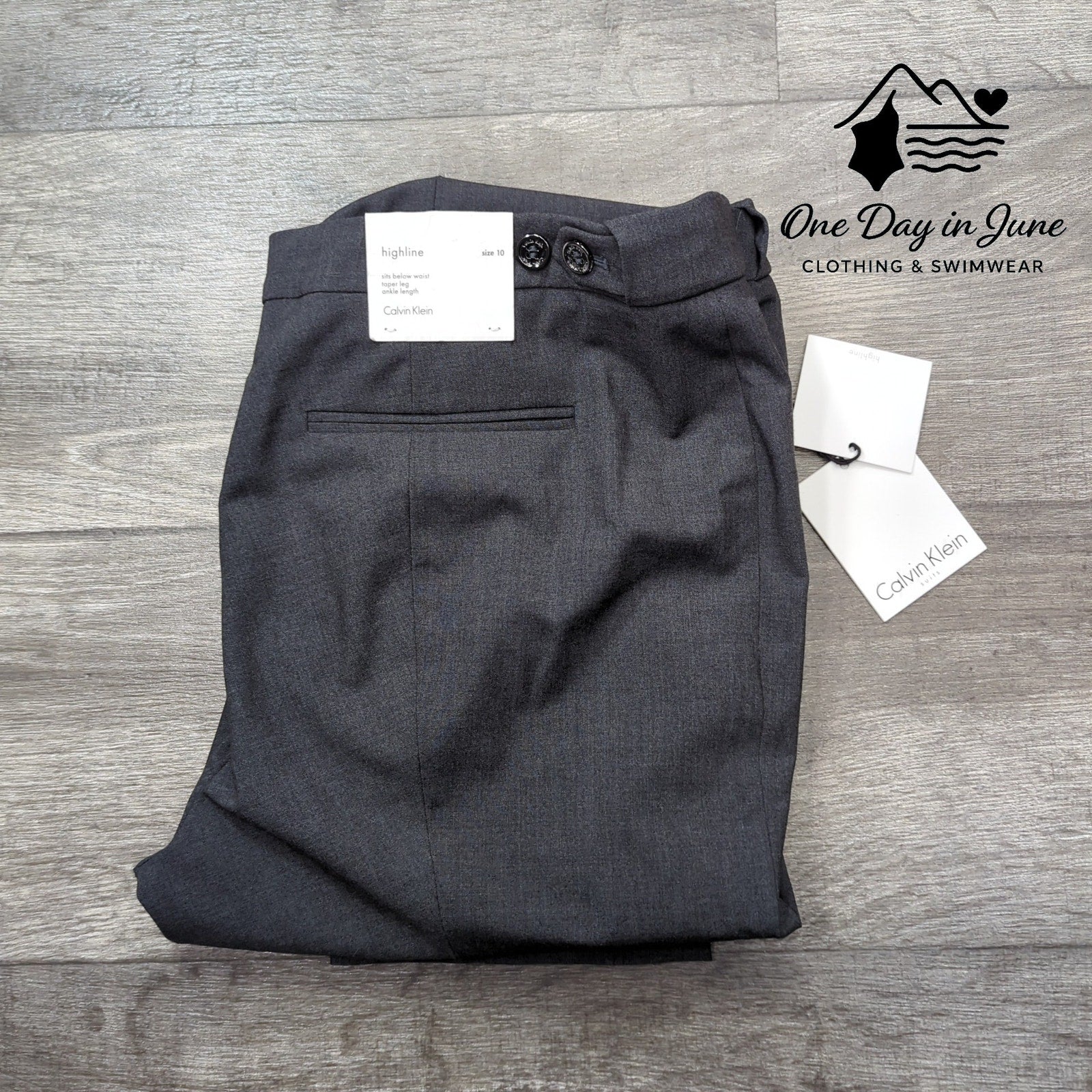 With a snazzy grey hue that's sure to delight, these Calvin Klein Highline Tapered pants fit just right! These new-with-tags ankle-length trousers with polyester lining will take you places, from work to dinner with style that truly embraces.