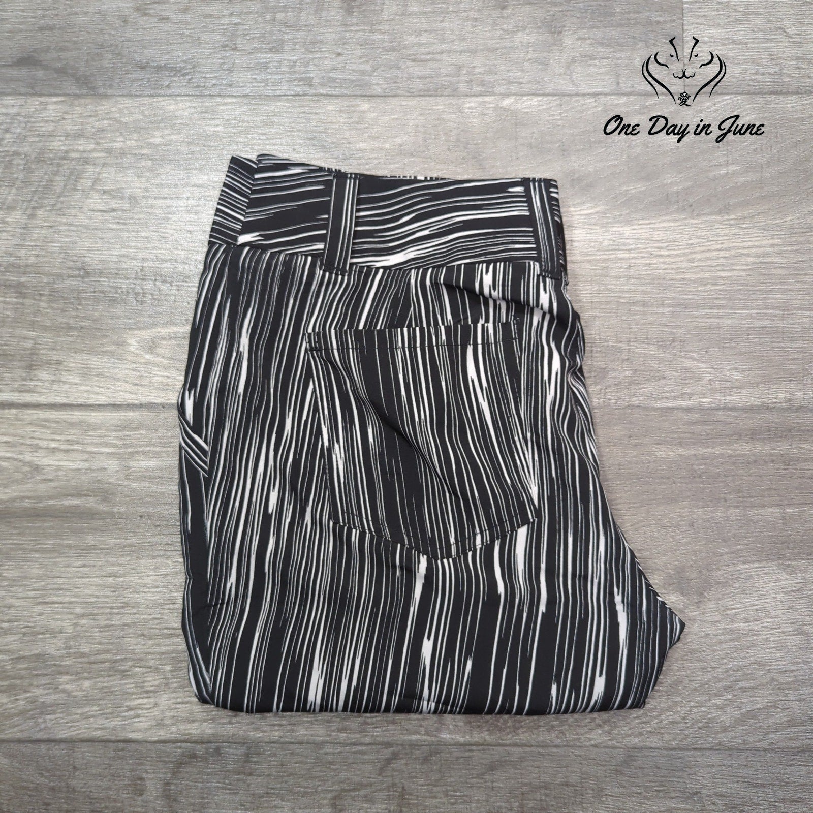 In a frenzied world of fashion chaos, these sleek black Calvin Klein pants emerge as a beacon of sanity, cutting through the madness with razor-sharp style. Like a whisper in the night, they drape effortlessly over the form, weightless as a fever dream yet sturdy enough to withstand the relentless onslaught of daily life. These polyester wonders are the armor of choice for the modern warrior-woman, ready to conquer the concrete jungle with a vengeance.