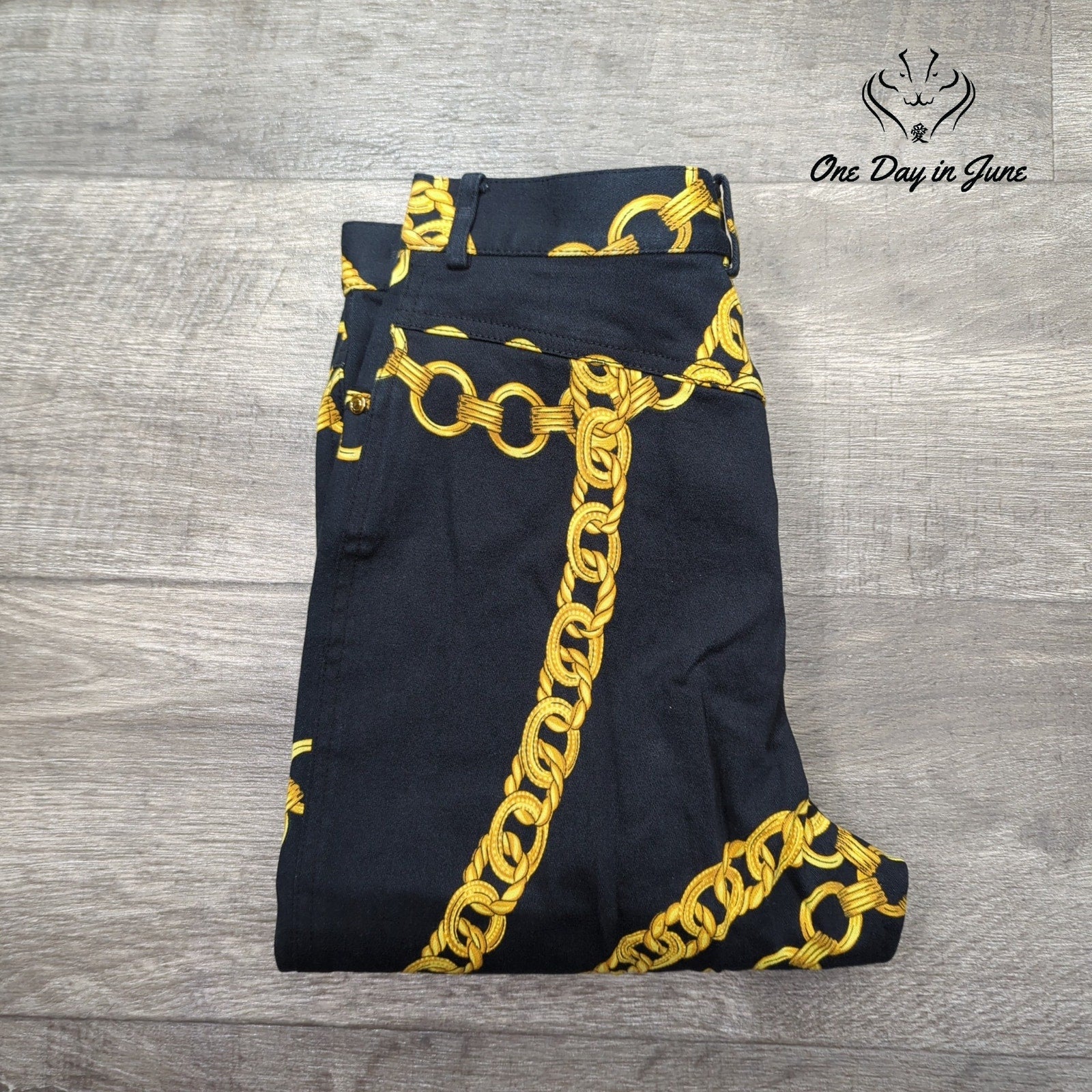 Impeccable black straight-leg jeans from luxury brand Carlisle, crafted from a premium cotton-rayon blend with a touch of stretch for the perfect fit. This sophisticated pair maintains its pristine condition, embodying timeless style with a modern silhouette.